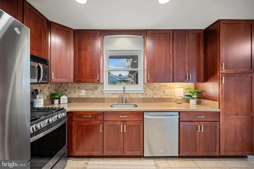 Welcome home! This charming split-level home offers beautiful modern updates in a convenient Annandale location! Step inside to discover gleaming hardwood floors that flow throughout the main level, setting a warm and inviting tone. The spacious living room features a cozy gas fireplace (updated 2025), elegant crown molding, and a wide picture window framed by sophisticated plantation shutters filling the space with natural light. Continue into the beautifully updated kitchen, showcasing rich cherry wood cabinetry, sleek granite countertops, a stylish tile backsplash.and stainless steel appliances including a brand-new stove and oven (2025). The bright dining area is perfectly positioned between the living room and kitchen, making it ideal for everyday meals or entertaining family and friends. Just off the kitchen, step into the light-filled screened porch with a wall of windows overlooking your private backyard, the perfect spot to enjoy your morning coffee or relax any time of year. Upstairs, hardwood floors lead you into the primary bedroom, featuring sophisticated chair rail molding and a calm ceiling fan. Two additional bedrooms on this level both feature hardwood floors, ceiling fans, and ample closet space. All three bedrooms share a bright, stylishly updated full bathroom (2020) with modern finishes and a classic design. Downstairs, the lower level expands your living space with a versatile recreation room featuring fresh paint and a bright full bathroom with contemporary updates (2021) perfect for guests, a home gym, playroom, or flexible space to suit your needs. Outside, enjoy your peaceful retreat with a spacious composite deck overlooking the large, fully fenced backyard surrounded by mature trees for shade and privacy. The expansive yard offers endless possibilities for gardening, play, or outdoor entertaining. A large shed in the backyard provides additional storage, while the attached one-car garage and driveway offer valuable storage space convenient parking for you and your guests. Roof is being replaced prior to closing, giving you additional peace of mind for years to come. Just minutes to Giant, Aldi, Springfield Town Center, Backlick Park, Mason District Park, Fort Belvoir, and The Pentagon. Quick access to Little River Turnpike, Columbia Pike, Braddock Road, I-495, and I-395 makes commuting across the DMV a breeze. Schedule a private tour of your beautiful new home today!