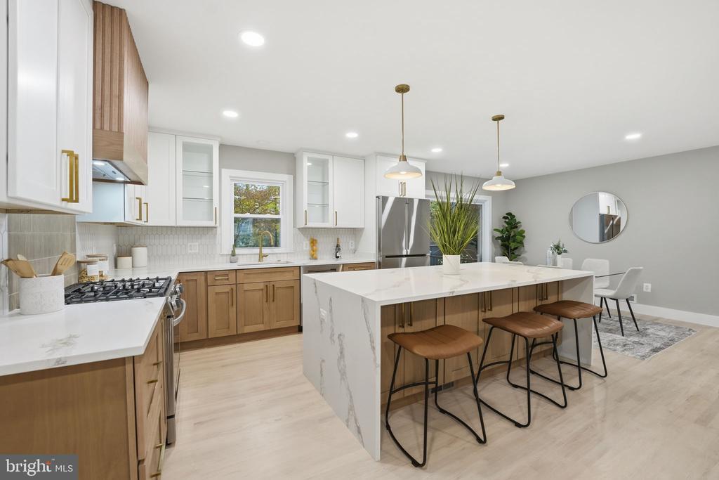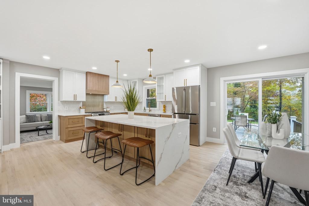 Stunning top-to-bottom renovation in sought-after Sleepy Hollow! This spacious 2-level home offers 5 bedrooms, 3 full baths, and a 1-car garage on a generous half-acre lot. Enjoy refinished hardwood floors, a cozy fireplace on each level, and an open-concept kitchen featuring a striking waterfall quartz island, stylish backsplash and stainless steel appliances. The main level includes a dedicated office, separate dining room, and a luxurious primary suite with dual closets and a sleek bath with double vanity. Step out onto the expansive TimberTech deck with Impression Rail system—perfect for entertaining! The fully finished walkout basement boasts a wet bar with beverage fridge, additional living space, and bedrooms. No HOA! Conveniently located near major commuter routes (50, 66, 495) and the East Falls Church Metro. Minutes to premier shopping, dining, parks, Falls Church City, Mosaic District, Tysons Corner, DC, and all that Northern Virginia has to offer. Move right in—this is a must-see!