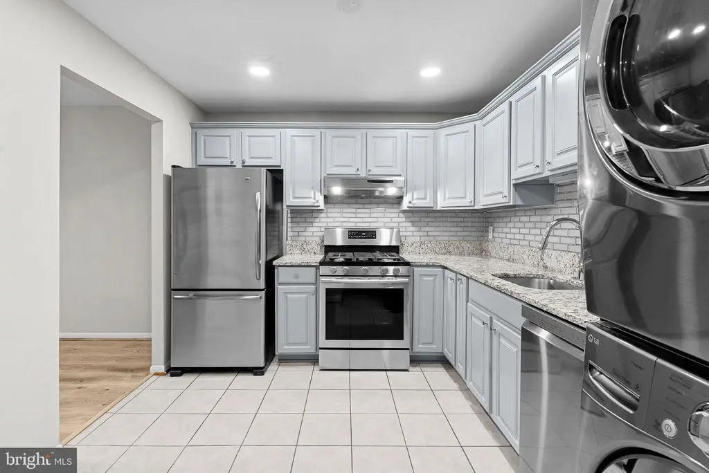 Dryer, Washer, Dishwasher, Disposal, Stove, Built-In Microwave, Refrigerator, Stainless Steel Appliances