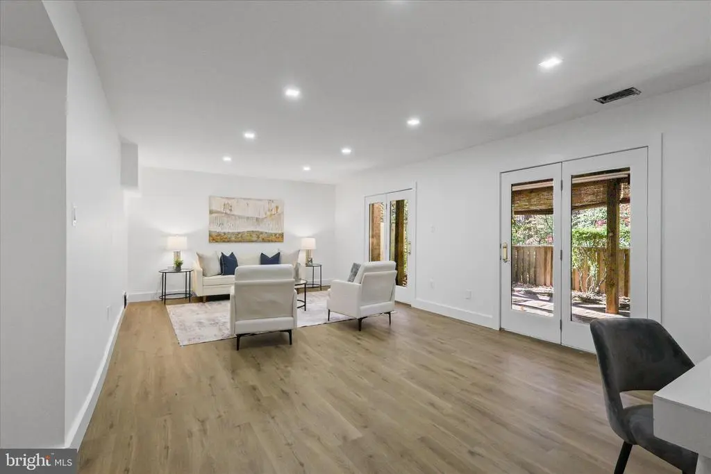 Discover the perfect blend of modern luxury and natural tranquility in this beautifully renovated 3-bedroom, 2 full and 2 half bath end-unit townhome. Nestled at the end of a quiet, no-thru street and surrounded by mature trees, this home offers rare privacy in a sought-after Reston setting. Step inside to find newly updated contemporary finishes throughout, including wide-plank luxury vinyl flooring and an open, light-filled layout designed for today’s lifestyle. The updated kitchen with eat-in breakfast area features quartz countertops, stunning kitchen hood vent, two tone cabinets, on trend backsplash and a coffee bar. Each updated bathroom showcases stylish modern design and quality craftsmanship. Enjoy seamless indoor-outdoor living with a spacious Trex deck featuring elegant iron railings and a graceful round staircase leading to the patio and fully fenced backyard—perfect for relaxing or entertaining. The walk-out lower level provides additional living space, ideal for a recreation room, home office, or guest retreat, complete with a convenient half bath. HVAC 2021 - water heater 2019 - newer roof. Located close to Reston’s trails, parks, shopping, metro and commuter routes, this move-in-ready home offers the perfect balance of convenience, comfort, and style.