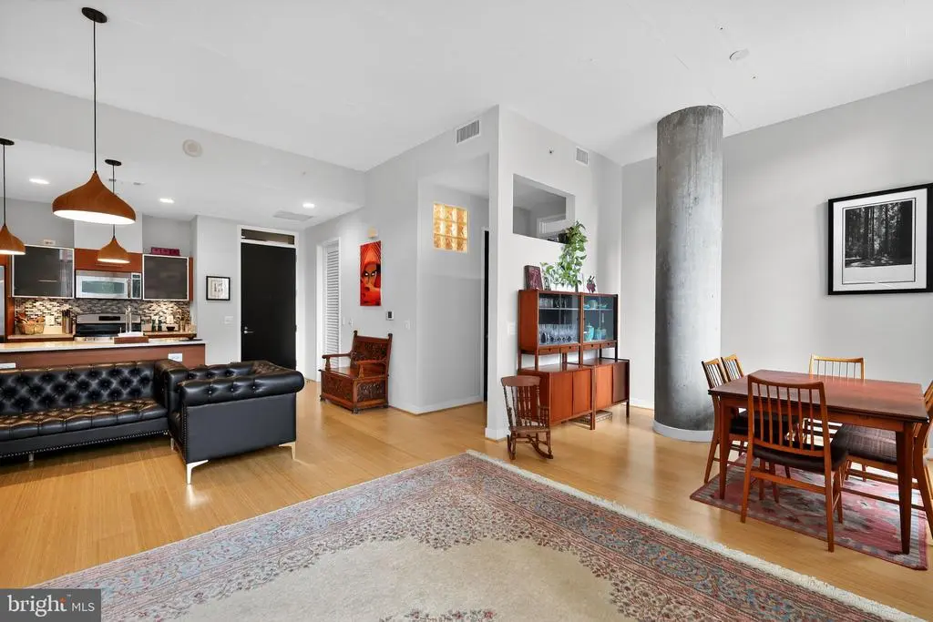 Modern Loft Living in the Heart of Reston Town Center Experience the ultimate in contemporary sophistication at Midtown North. This striking 1-bedroom, 1.5-bath loft-style condo offers an open-concept design with 12-foot ceilings, dramatic floor-to-ceiling windows overlooking the quiet courtyard, and polished architectural pillars that bring an urban edge to the space. Ideally located close to the elevator for everyday convenience yet tucked away in a peaceful position within the building, this residence offers the perfect balance of accessibility and tranquility. The expansive layout easily accommodates distinct living and dining areas, along with a flexible nook ideal for a home office, reading corner, or yoga space. Bamboo flooring flows throughout the main living area, while the spacious bedroom features plush carpeting, a walk-in closet that impresses, and an elegant en suite bath complete with dual sinks, a soaking tub, and a separate shower. The gourmet kitchen showcases sleek cabinetry, high-end stainless steel appliances, and generous counter space—perfect for everyday living or entertaining. Additional highlights include an in-unit laundry and storage area, a convenient half bath, and one assigned garage parking space with secure indoor access, plus a dedicated storage unit. Residents of Midtown North enjoy a full suite of amenities, including a concierge, rooftop terrace with sweeping views of Reston Town Center, fitness center, resident lounge with surround sound, and a community art studio. Step outside to world-class dining, luxury shopping, entertainment, and the Silver Line Metro—everything you need for effortless urban living.