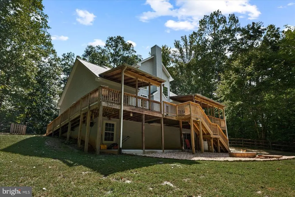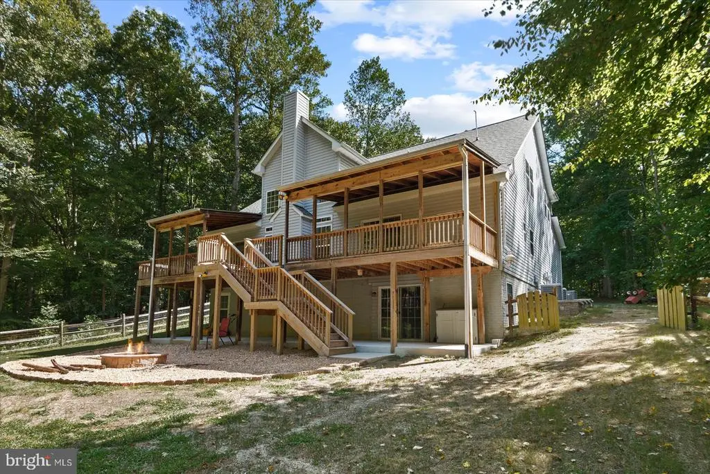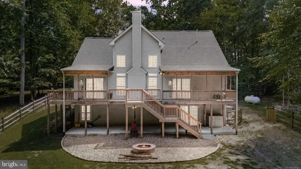 Welcome to this beautifully renovated 4-bedroom, 2 full and 2 half bath home set on 4 private acres, offering the perfect blend of space, comfort, and modern updates. From the inviting covered front porch to the expansive backyard and thoughtful interior design, this property is ideal for both everyday living and entertaining. Step inside to a dramatic two-story foyer that flows into a bright and open floor plan. The two-story family room is the heart of the home, anchored by a stunning stone wood-burning fireplace and overlooked by a loft and upper seating area. A dedicated main-level office provides the perfect space for work or study. The kitchen is a delight, featuring all-new stainless steel appliances (2023), granite countertops, a breakfast bar, 58-inch cabinetry, pantry, and an adjacent dining room. Sliding glass doors lead to the covered back deck, creating a seamless indoor-outdoor living experience. The main-level primary suite is a private retreat with a 5-piece en suite bath, walk-in closet, and direct access to the covered deck—perfect for morning coffee or evening relaxation. Upstairs, you’ll find three additional bedrooms, a full bath, and versatile loft and seating areas overlooking the family room below. The full unfinished basement offers endless potential, with a rough-in for an additional bathroom and walk-out access to a covered patio and firepit area. ✨ Renovation Highlights: New roof Two new HVAC units Whole-house generator Fresh paint & new carpet New gravel driveway Additional features include a fenced-in backyard, 2-car attached garage, and plenty of outdoor space for recreation or gardening.