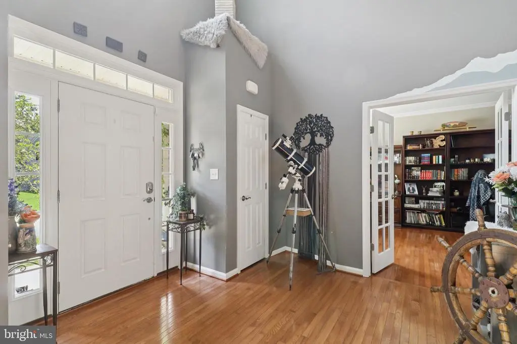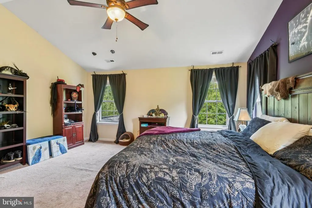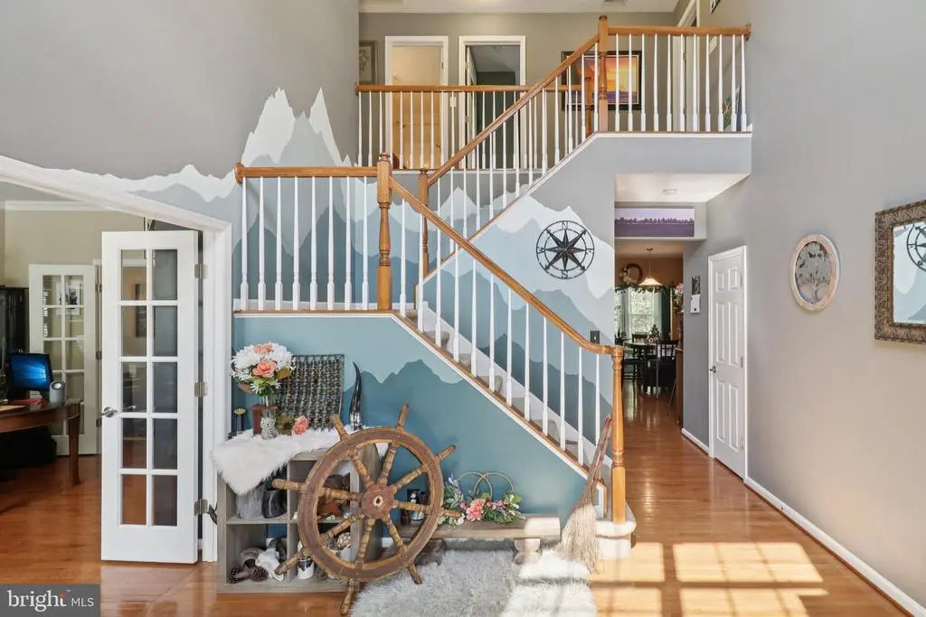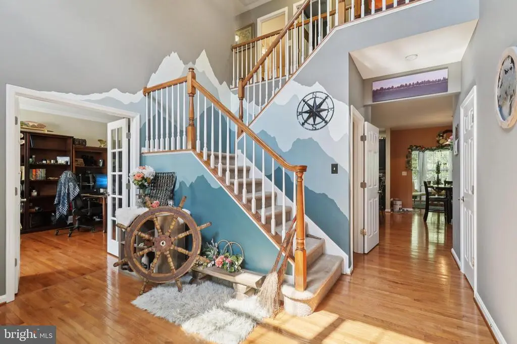 Tucked away on a private drive in the coveted Hopyard Farm community in King George, this three-story colonial blends sophistication, comfort, and natural beauty. Inside, you’ll discover custom-designed bedrooms, including a serene primary suite with a spacious walk-in closet. The main level makes a stunning first impression with a sun-drenched foyer and a hand-painted mural that sets the tone for the home’s artistry. French doors open into a refined office featuring wall units and a statement accent wall. The European-inspired dining room, adorned with tray ceilings and imported décor, creates an inviting atmosphere for elegant entertaining. At the heart of the home, the updated kitchen boasts double ovens, a walk-in pantry, and a bar-height island, seamlessly flowing into the breakfast area, living room, and bright sunroom. Step outside to the deck, perfect for alfresco dining, entertaining guests, or unwinding with views of the private, tree-lined landscape. The finished lower level offers exceptional versatility with a complete in-law suite, featuring its own kitchenette, bedroom, office, and spacious living area. Additional unfinished space is ideal for storage, a home gym, or a creative workshop. Backing to a conservation easement along the Rappahannock watershed, the property is a haven for wildlife—bald eagles, songbirds, butterflies, and native flora all flourish here. Beyond your backyard, the Hopyard Farm community offers many amenities, including a pool, playgrounds, clubhouse, walking trails, and a private dock with water access. Perfectly positioned between Dahlgren and Fredericksburg, and just 30 minutes from VRE, Amtrak, and commuter routes to Washington, D.C., this home combines tranquility with unmatched convenience. A rare opportunity to own a private retreat that truly has it all—schedule your tour today and make this house your home! 2.25% VA LOAN ASSUMPTION OPTION AVAILABLE FOR FINANCING