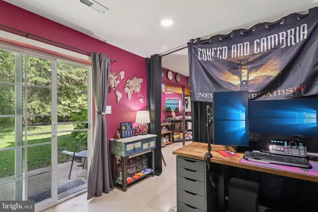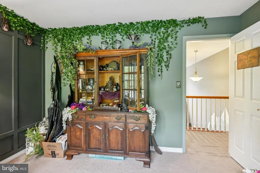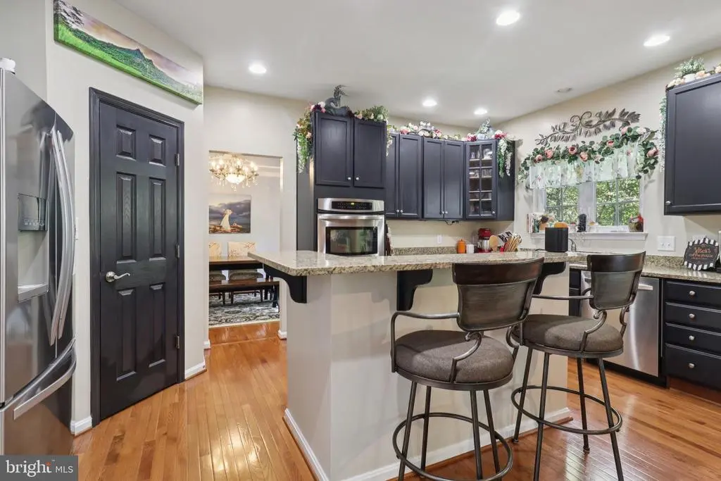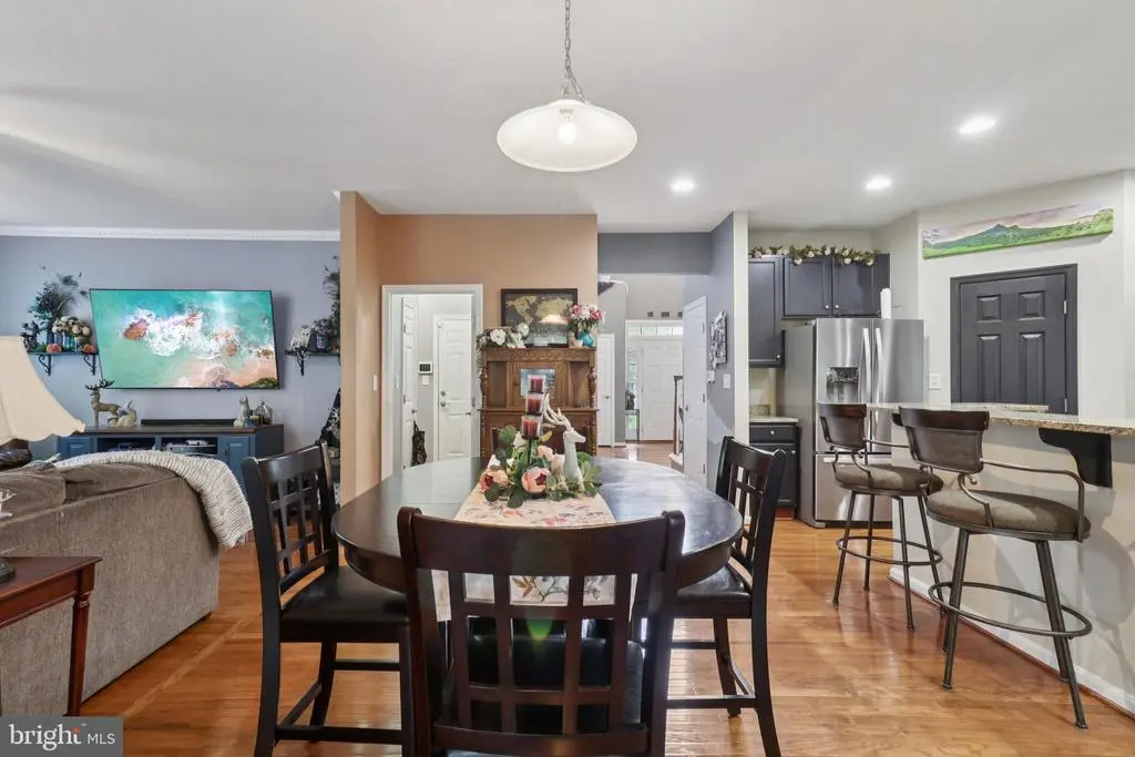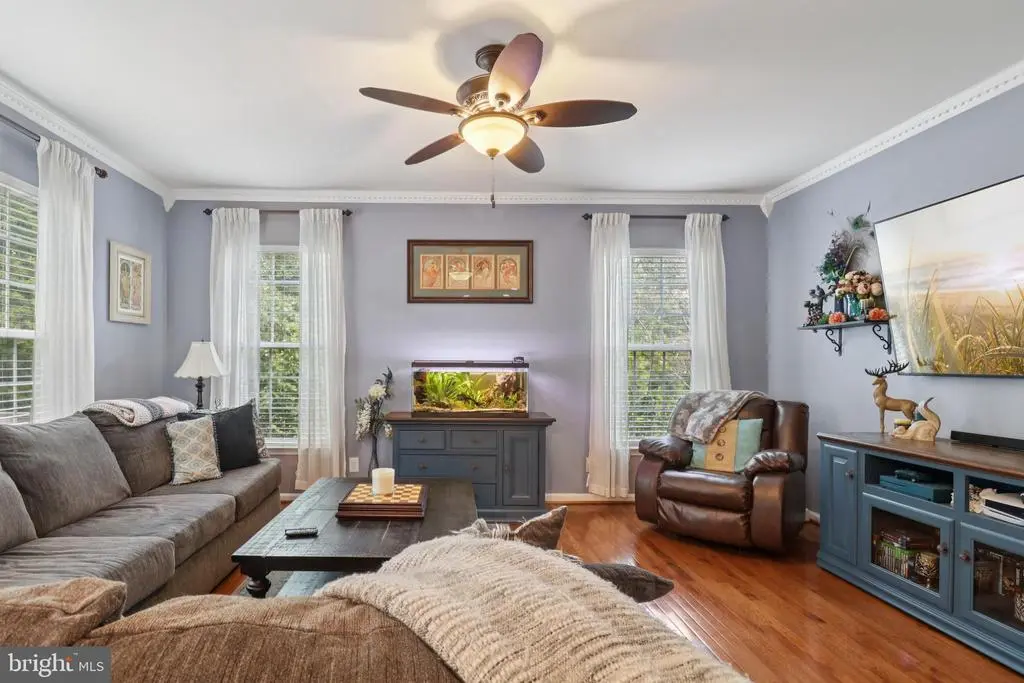 Tucked away on a private drive in the coveted Hopyard Farm community in King George, this three-story colonial blends sophistication, comfort, and natural beauty. Inside, you’ll discover custom-designed bedrooms, including a serene primary suite with a spacious walk-in closet. The main level makes a stunning first impression with a sun-drenched foyer and a hand-painted mural that sets the tone for the home’s artistry. French doors open into a refined office featuring wall units and a statement accent wall. The European-inspired dining room, adorned with tray ceilings and imported décor, creates an inviting atmosphere for elegant entertaining. At the heart of the home, the updated kitchen boasts double ovens, a walk-in pantry, and a bar-height island, seamlessly flowing into the breakfast area, living room, and bright sunroom. Step outside to the deck, perfect for alfresco dining, entertaining guests, or unwinding with views of the private, tree-lined landscape. The finished lower level offers exceptional versatility with a complete in-law suite, featuring its own kitchenette, bedroom, office, and spacious living area. Additional unfinished space is ideal for storage, a home gym, or a creative workshop. Backing to a conservation easement along the Rappahannock watershed, the property is a haven for wildlife—bald eagles, songbirds, butterflies, and native flora all flourish here. Beyond your backyard, the Hopyard Farm community offers many amenities, including a pool, playgrounds, clubhouse, walking trails, and a private dock with water access. Perfectly positioned between Dahlgren and Fredericksburg, and just 30 minutes from VRE, Amtrak, and commuter routes to Washington, D.C., this home combines tranquility with unmatched convenience. A rare opportunity to own a private retreat that truly has it all—schedule your tour today and make this house your home! 2.25% VA LOAN ASSUMPTION OPTION AVAILABLE FOR FINANCING