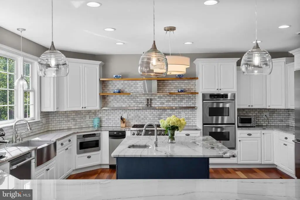 No detail was overlooked in this breathtaking 3-car garage single-family home perched on a picturesque 6+ acre lot overlooking its own private stocked 1 acre pond with solar powered fountain and breathtaking pastoral and peekaboo mountain views. Two covered front porches welcome you home offering countless hours of relaxation while rocking your worries away and watching nature pass you by. Newer HVAC(2023) and Newer dual tankless water heaters(2022) for worry-less living. With over 5800 finished square feet on the main 2 levels alone, the open concept sun-filled interior is an environment of refined authenticity and elegance with gleaming hardwood floors; beautifully remodeled bathrooms; soaring ceilings; triple crown and chair molding; upgraded light fixtures; and a neutral designer color palette throughout. The gourmet kitchen is a chef's dream, boasting a massive island plus separate breakfast bar with ample seating; designer range hood; gorgeous granite countertops; stainless steel appliances; custom backsplash; walk-in pantry; and opening to a generous eat-in area and spacious two-story great room with a coffered ceiling that is ready for game night or a quiet evening in next to the cozy fireplace. Solarium with wall to wall transom windows and tray ceiling is a show stopper. Main level bedroom/flex room perfect for an office or guests, refined formal living/dining room, and a large laundry/mudroom with plenty of storage complete the main level. Upstairs you’ll find 4 large bedrooms all with en suite bathrooms to include the luxurious and sprawling primary suite with a double sided fireplace, large sitting area with beautiful arched windows with matching archways, tray ceiling, massive closets with custom cabinetry, and a spa-like en suite bath with multi-person tub and glass frameless shower. A walk-out basement with rough-ins offers limitless possibilities to expand the living space to over 8000 square feet. Spend countless weekends entertaining or just relaxing on the wonderful deck that steps down to a full soccer pitch worthy back yard. Two wells provide abundant water to meet even the most demanding family needs. Minutes to marvelous local wineries and breweries, Harper’s Ferry and major commuting routes. Straight out of a magazine and ready to call yours!