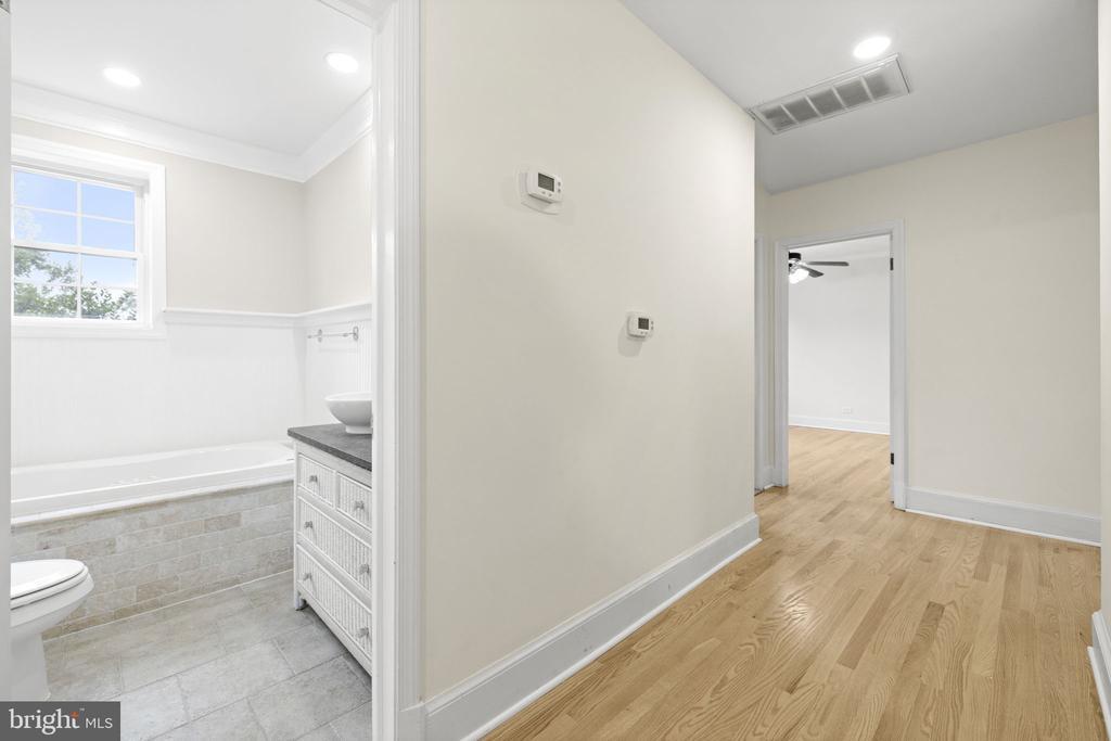 Soaking Tub, Stall Shower, Bathroom - Walk-In Shower, Built-Ins, CeilngFan(s), Crown Molding, Entry Lvl BR, Recessed Lighting, Upgraded Countertops, Wainscotting, Walk-in Closet(s), Wood Floors