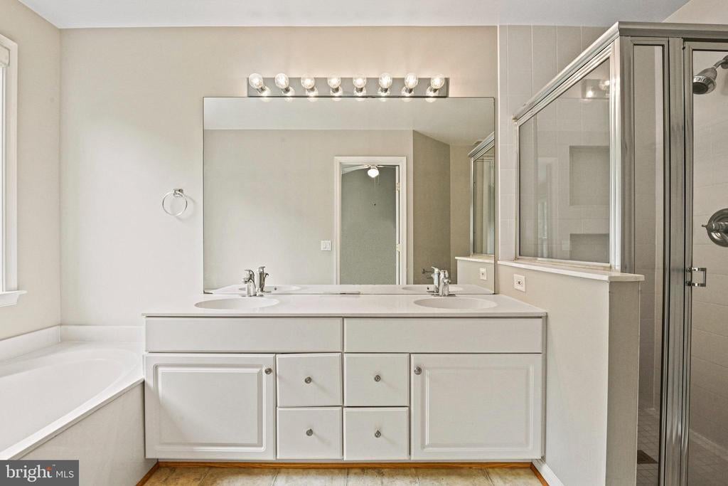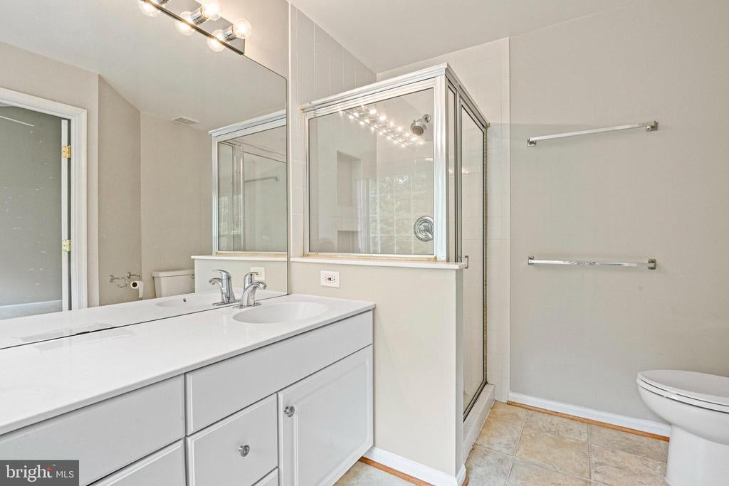 Awesome house located in the desirable Cascades community. Entry level features a full bathroom and huge rec room space with walk out to a concrete patio backing to a private wooded setting and steps up to a large deck. Three bedrooms and 3 1/2 baths and very spacious rooms. The entry level has large neutral stone tile flooring. Hardwood stairs to the upper level that also features the same large stone tiles. A separate dining room sits between the kitchen and living room. The living room features upgraded carved design carpeting and a gas log fireplace. Sliding doors exit to large deck w/stairs to ground. The kitchen was renovated in 2015 with beautiful cabinets featuring glass doors, granite counter-tops, a large window, table eating space, large deep double sink. The bedroom level contains the laundry room, so convenient to be near bedrooms. The primary bedroom has vaulted ceilings and a large walk in closet. The primary bathroom has dual vanities, soaking tub and separate shower.***** The Cascades community, highly desirable, features FIVE community centers, Five swimming pool, 15 tennis courts, 8 pickleball courts, 10 multipurpose courts, 25 tot lots a Bocce court and soccer field. Shopping and eateries galore right down the road.