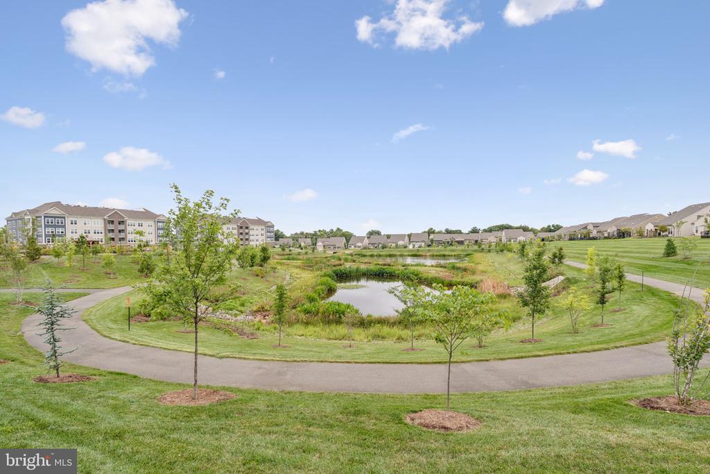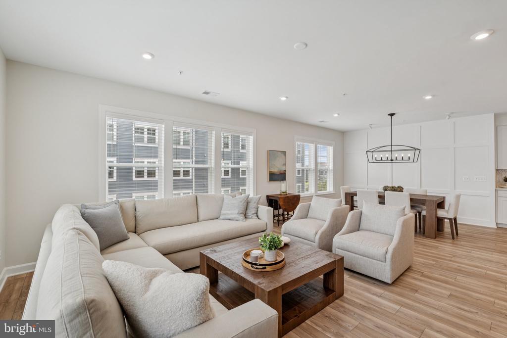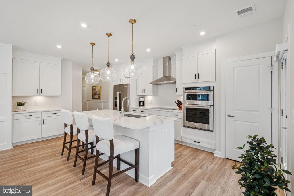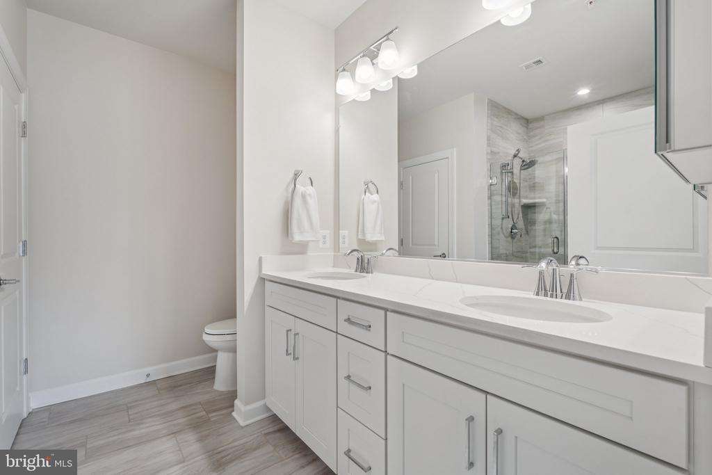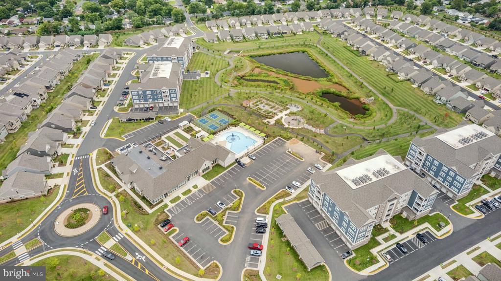 Welcome to the home you’ve been waiting for, fresh, stylish, and move-in ready in Del Webb’s premier 55+ community, Montebello. With approximately 1,900+ square feet, three bedrooms, and reserved parking for three vehicles, this sun-filled corner condo is the largest floor plan available, blending comfort with thoughtful upgrades throughout. From the moment you step inside, you’ll notice the details that make this home special: custom board and batten wainscoting in the entry and dining room, designer lighting, fresh paint, a herringbone ceramic backsplash, a retractable patio screen door, and built-in organizers in the primary closet. Even the laundry room has been refreshed with a brand-new (2025) Maytag washer and dryer, because little conveniences make a big difference. At the heart of the home is a bright and beautiful chef’s kitchen, complete with KitchenAid stainless steel appliances, white shaker soft-close cabinets, quartz countertops, and a breakfast bar for casual dining. The adjacent office nook with custom built-ins is wonderfully versatile; it can serve as a tucked-away workspace, an elegant butler’s pantry, or even transform into a fun cocktail bar for entertaining. The open layout seamlessly connects the dining and living rooms, where abundant windows fill the space with natural light, and continues out to a charming corner balcony, perfect for morning coffee or an evening glass of wine. The spacious primary suite features modern lighting, a walk-in closet with custom built-ins, and a luxurious ensuite bath with a double-sink vanity and a frameless glass walk-in shower complete with a built-in seat. Two additional bedrooms and a second full bath, also finished with a frameless glass shower, built-in seat, and quartz countertops, offer versatility for guests or hobbies. Throughout the main living areas, durable LVP flooring adds both warmth and style. Everyday living is made simple with its convenient location near the stairs, a deeded garage with epoxy floors, a driveway space, and a reserved parking spot right outside. Plus, you’ll have a storage cage on the lobby level for all the extras. Life at Montebello is designed for connection, activity, and pure enjoyment. The Guilford House clubhouse spans 14,000 square feet and offers something for everyone: an indoor pool and spa, fitness center, game room, demo kitchen, and plenty of inviting spaces for clubs, classes, and gatherings. Step outside to discover a resort-style pool with shaded cabanas, pickleball and bocce courts, and scenic walking trails that weave through the community. You’ll also find a community garden, outdoor grills, and picnic areas with tables and chairs, perfect for cookouts and casual get-togethers. And when it’s time to head out, you’re perfectly located near Routes 7, 28, 50, and the Dulles Toll Road, with shopping, dining, and even Costco just minutes away, not to mention the natural beauty of Claude Moore Park.