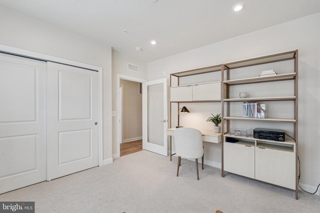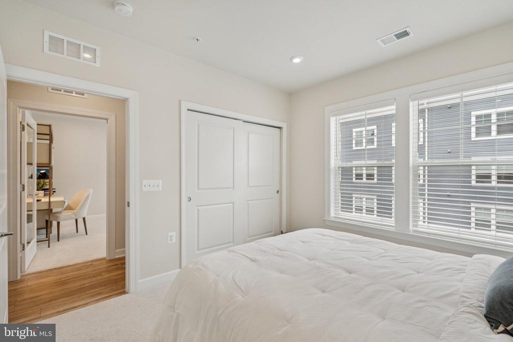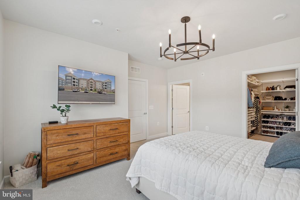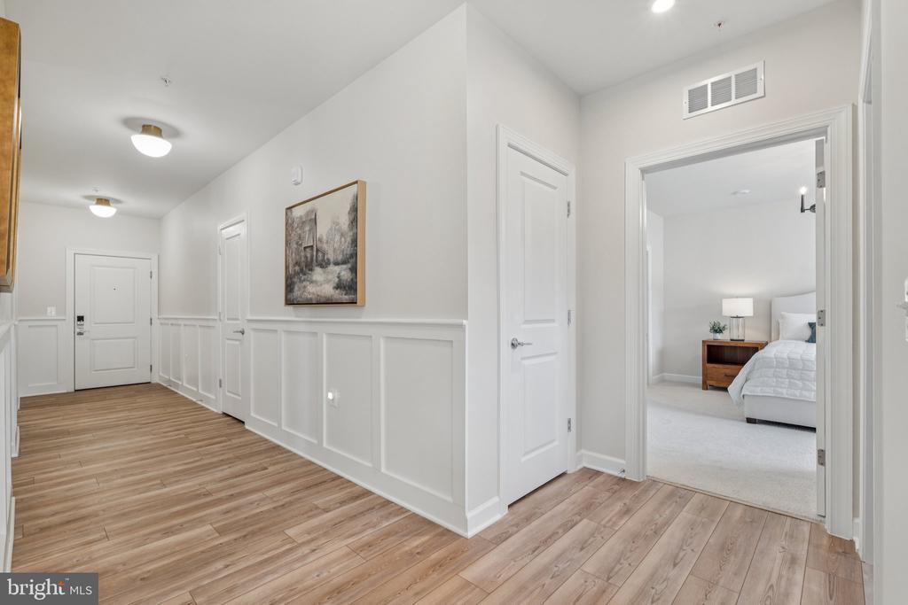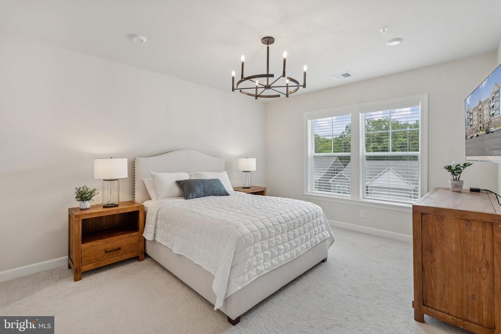 Welcome to the home you’ve been waiting for, fresh, stylish, and move-in ready in Del Webb’s premier 55+ community, Montebello. With approximately 1,900+ square feet, three bedrooms, and reserved parking for three vehicles, this sun-filled corner condo is the largest floor plan available, blending comfort with thoughtful upgrades throughout. From the moment you step inside, you’ll notice the details that make this home special: custom board and batten wainscoting in the entry and dining room, designer lighting, fresh paint, a herringbone ceramic backsplash, a retractable patio screen door, and built-in organizers in the primary closet. Even the laundry room has been refreshed with a brand-new (2025) Maytag washer and dryer, because little conveniences make a big difference. At the heart of the home is a bright and beautiful chef’s kitchen, complete with KitchenAid stainless steel appliances, white shaker soft-close cabinets, quartz countertops, and a breakfast bar for casual dining. The adjacent office nook with custom built-ins is wonderfully versatile; it can serve as a tucked-away workspace, an elegant butler’s pantry, or even transform into a fun cocktail bar for entertaining. The open layout seamlessly connects the dining and living rooms, where abundant windows fill the space with natural light, and continues out to a charming corner balcony, perfect for morning coffee or an evening glass of wine. The spacious primary suite features modern lighting, a walk-in closet with custom built-ins, and a luxurious ensuite bath with a double-sink vanity and a frameless glass walk-in shower complete with a built-in seat. Two additional bedrooms and a second full bath, also finished with a frameless glass shower, built-in seat, and quartz countertops, offer versatility for guests or hobbies. Throughout the main living areas, durable LVP flooring adds both warmth and style. Everyday living is made simple with its convenient location near the stairs, a deeded garage with epoxy floors, a driveway space, and a reserved parking spot right outside. Plus, you’ll have a storage cage on the lobby level for all the extras. Life at Montebello is designed for connection, activity, and pure enjoyment. The Guilford House clubhouse spans 14,000 square feet and offers something for everyone: an indoor pool and spa, fitness center, game room, demo kitchen, and plenty of inviting spaces for clubs, classes, and gatherings. Step outside to discover a resort-style pool with shaded cabanas, pickleball and bocce courts, and scenic walking trails that weave through the community. You’ll also find a community garden, outdoor grills, and picnic areas with tables and chairs, perfect for cookouts and casual get-togethers. And when it’s time to head out, you’re perfectly located near Routes 7, 28, 50, and the Dulles Toll Road, with shopping, dining, and even Costco just minutes away, not to mention the natural beauty of Claude Moore Park.