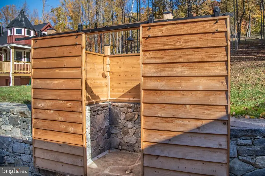 BBQ Grill,Stone Retaining Walls,Outbuilding(s),Flood Lights,Extensive Hardscape,Porch(es),Roof
