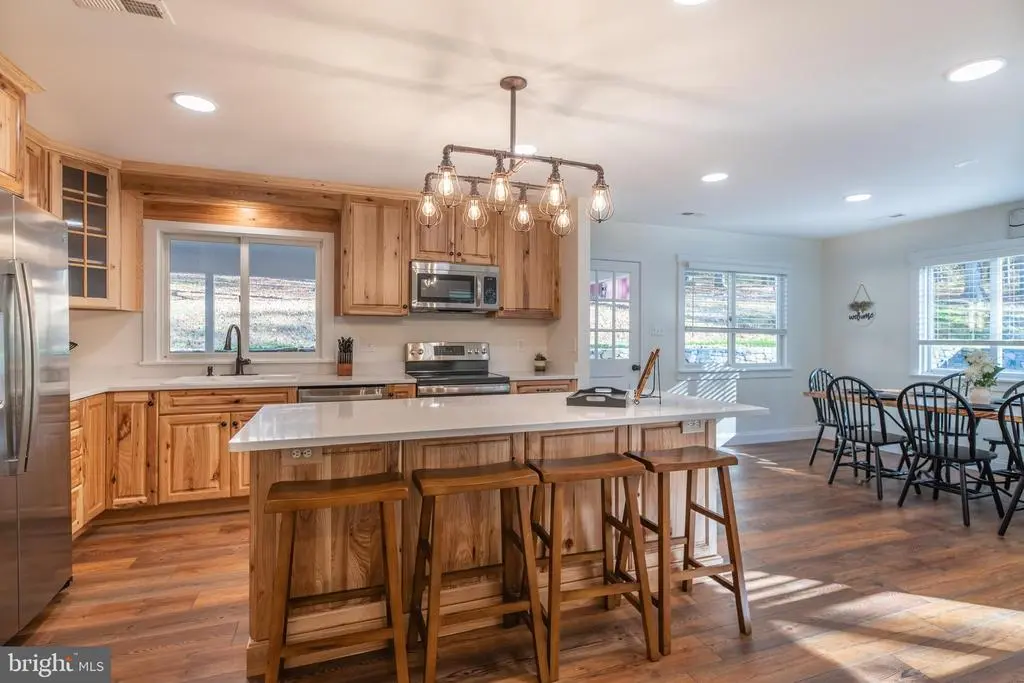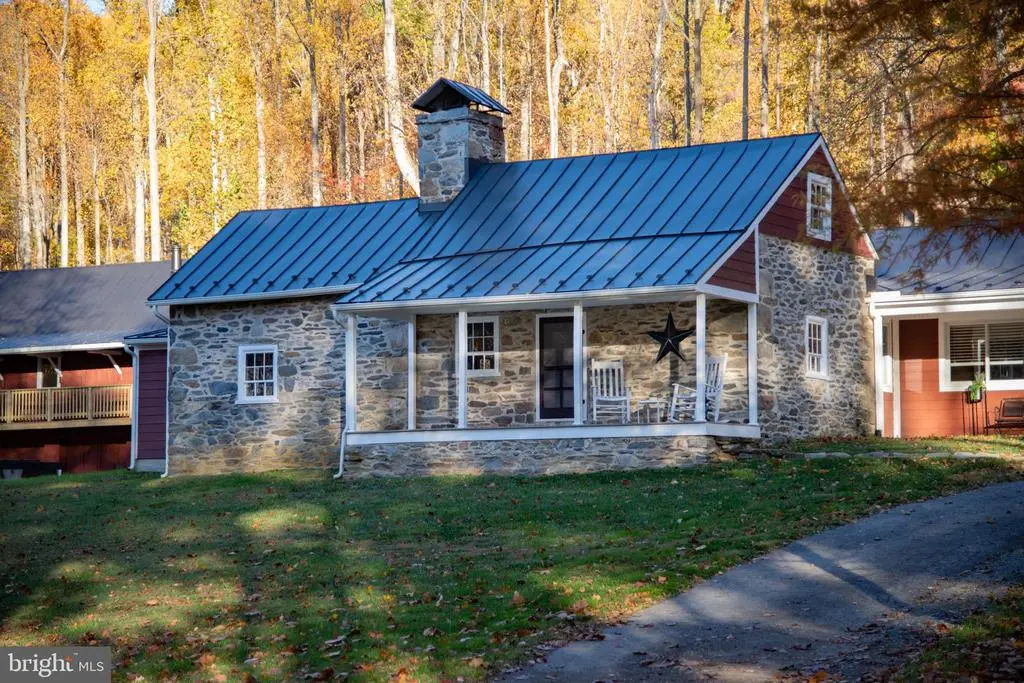 This charming cottage-style home, built in 1700 and fully renovated in 2022, offers a perfect blend of historic character and modern amenities. Spanning 2,156 sq. ft. , the interior features two spacious bedrooms and two full bathrooms, including a luxurious soaking tub and a walk-in shower. The traditional floor plan boasts an eat-in kitchen with an island, complemented by recessed lighting and wood floors throughout. Enjoy cozy evenings by the stone fireplace or unwind in the whirlpool hot tub. Set on a generous 10.36-acre lot in a serene mountain location, the exterior showcases extensive hardscaping, stone retaining walls, and multiple outbuildings, including a bank barn and storage shed. Outdoor entertaining is a breeze with a BBQ grill and covered porches. The property offers stunning views of the creek, mountains, and lush pastures, creating a tranquil retreat. With ample parking and proximity to water features, this home is a rare find for those seeking peace and natural beauty.