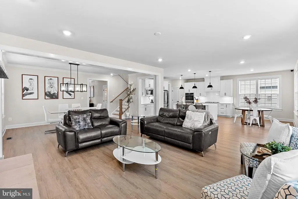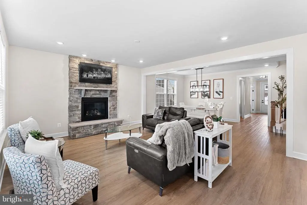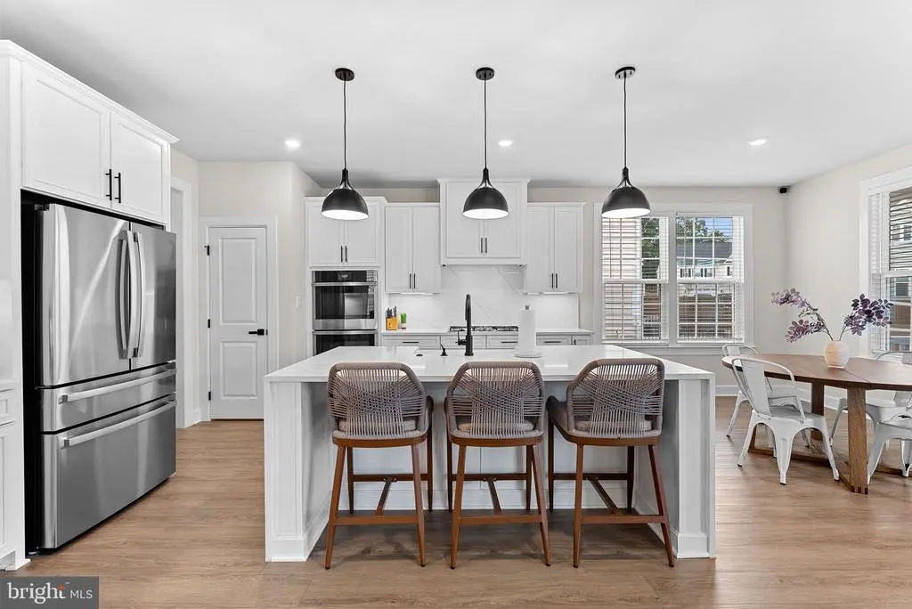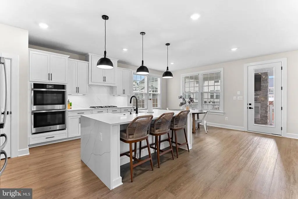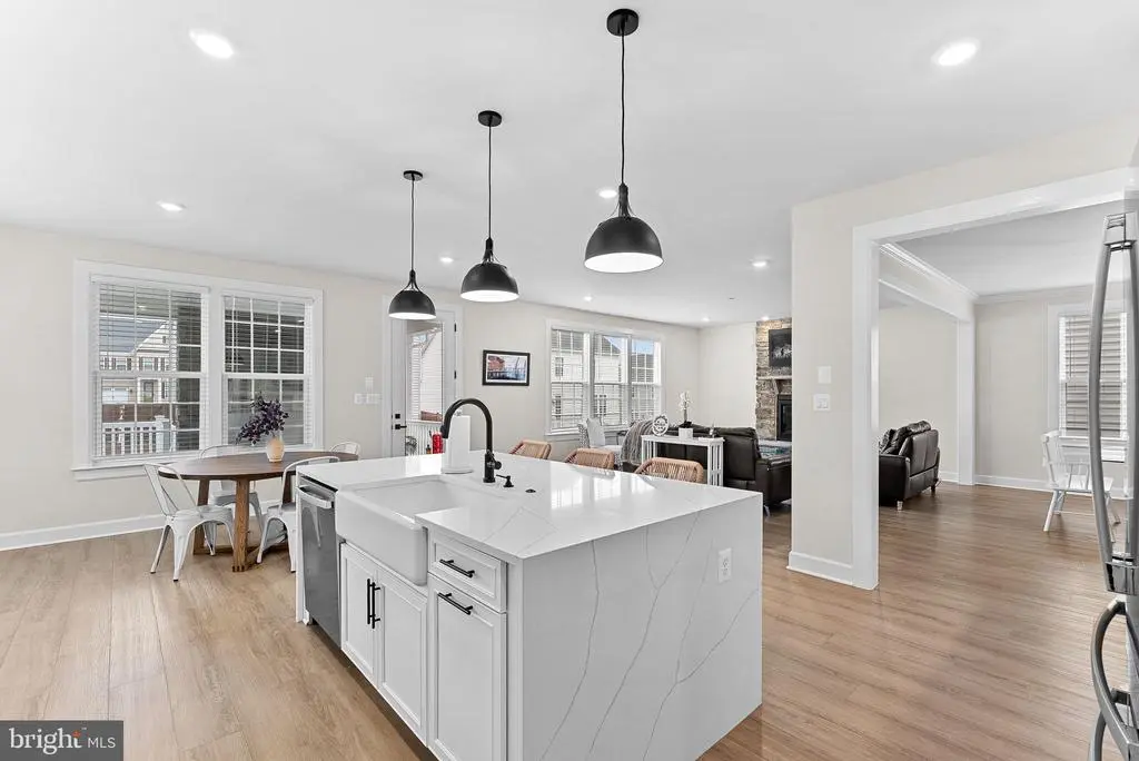 Welcome to Tuscarora Crossing! This one-year-young single-family home showcases the Baldwin floor plan, offering three finished levels, 5 bedrooms, 4.5 bathrooms, and nearly 4,500 square feet of luxurious living space filled with upgrades throughout. Step into the elegant foyer, where a stylish office makes an immediate impact. A powder bath with linen closet and coat closet complete the entryway before leading into the open-concept main level. Here, you’ll find a formal dining room, sun-filled family room with additional windows and fireplace complimented by floor-to-ceiling stone. breakfast area, and a truly stunning gourmet kitchen. The kitchen features abundant cabinetry, quartz countertops extended up to the backsplash, a waterfall island, ceramic white-apron farmhouse sink, pendant lighting, hardwired under-cabinet lighting, upgraded stainless-steel appliances, and a walk-in pantry. Off the two-car front-load garage, a mudroom with hooks, storage, and an additional coat closet keeps daily life organized. The entire main level is finished with luxury vinyl plank flooring. From the family room, step out to a large, full Trex covered deck complete with a striking floor-to-ceiling stone fireplace and mantle. The deck overlooks a spacious backyard - perfect for entertaining, letting the dog run, or giving kids plenty of room to play. Upstairs, oak stairs lead to a spacious hallway also upgraded with luxury vinyl plank flooring. Two bedrooms share a Jack-and-Jill bath with quartz-topped dual-vanity sinks and a private shower/toilet space. The expansive primary suite boasts a tray ceiling, added recessed lighting, two walk-in closets, and a spa-like bath with quartz-topped dual vanities, soaking tub, upgraded tile, and a frameless glass shower. A convenient laundry room with an added sink and cabinetry is located nearby. A fourth bedroom with its own walk-in closet and full quartz-topped vanity bathroom completes the upper level. The finished basement offers upgraded carpeting, a large recreation area, and an impressive wet bar with wine fridge, sink, dishwasher, shelving, and cabinetry - perfect for entertaining. The rec area is also wired for a projector! A fifth bedroom with walk-in closet and full bath, plus a massive storage room, round out the lower level. Community amenities currently include a tot lot, fire pit, and a walking path connecting you to the W&OD trail. Perfectly located off Route 7, this home is within walking distance to Village at Leesburg shopping, dining, and entertainment. Enjoy being just five minutes from the Leesburg Outlets, 10 minutes from Downtown Leesburg, and under 10 minutes from One Loudoun. This Tuscarora Crossing beauty combines thoughtful design, high-end finishes, and an unbeatable location - ready to welcome you home!