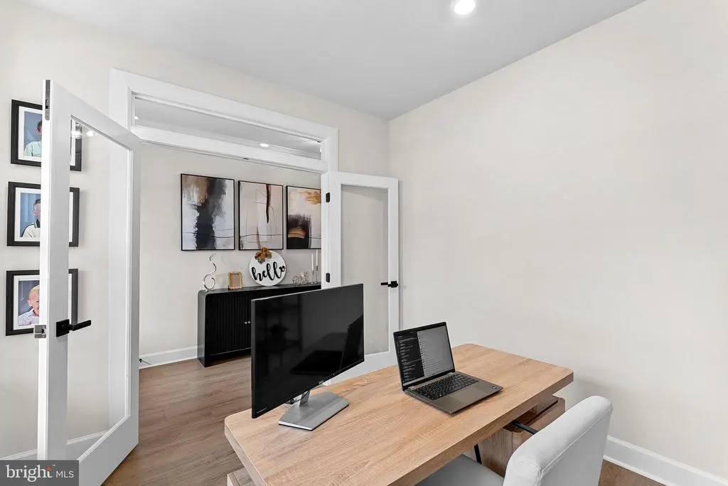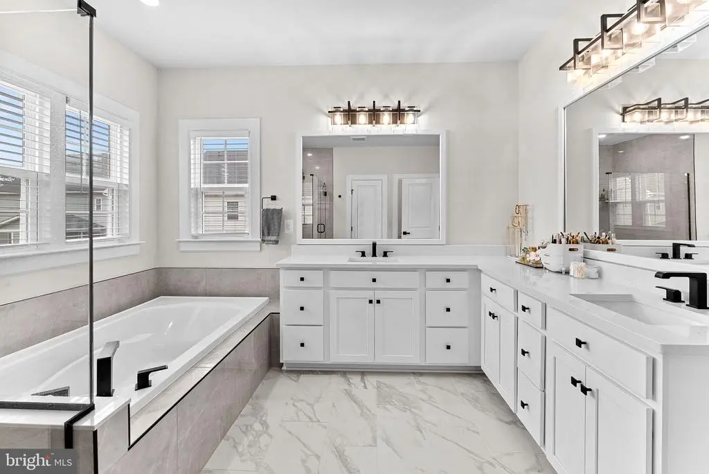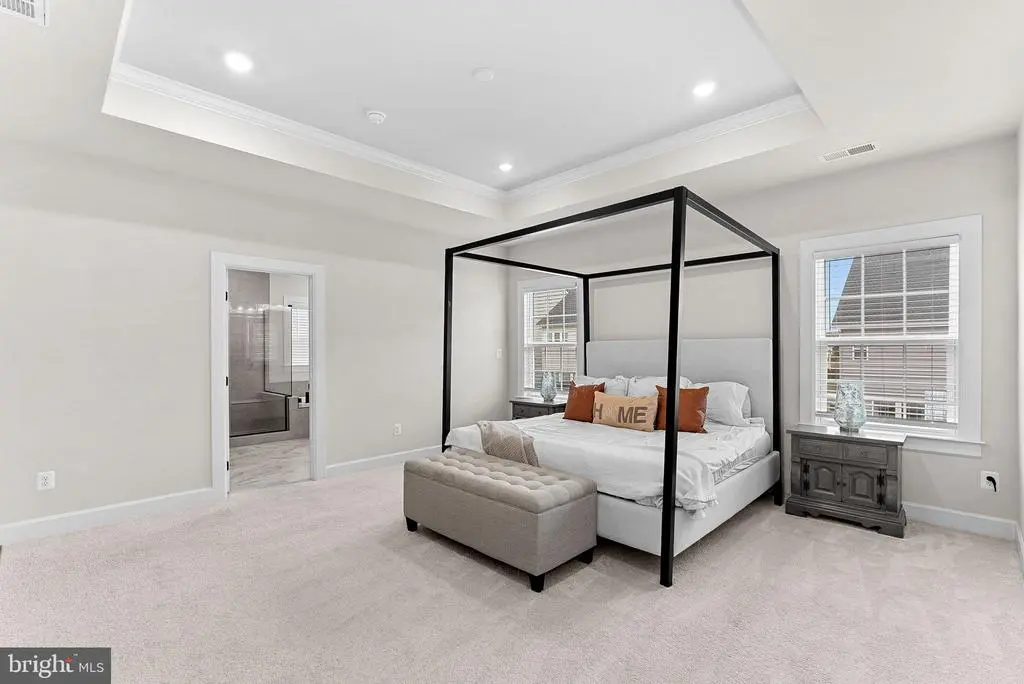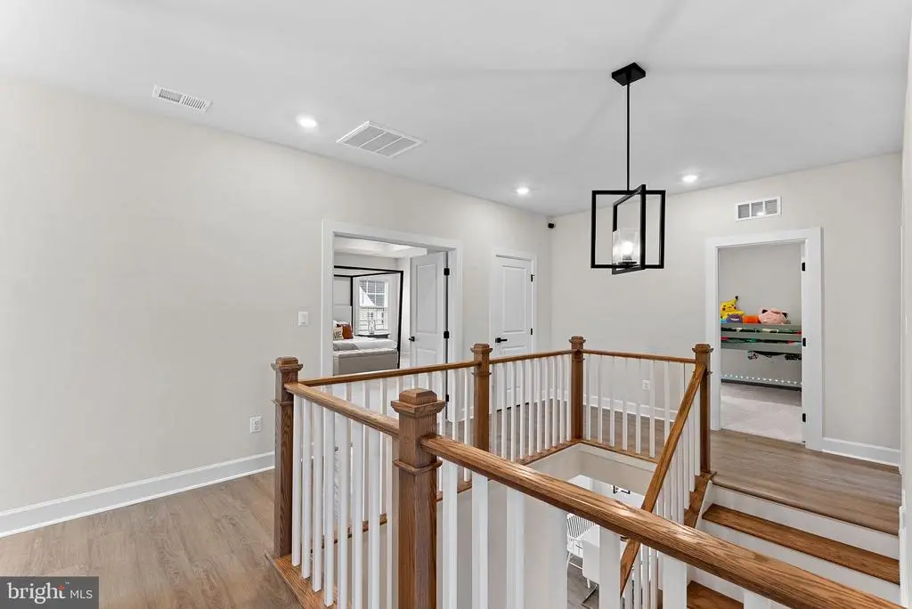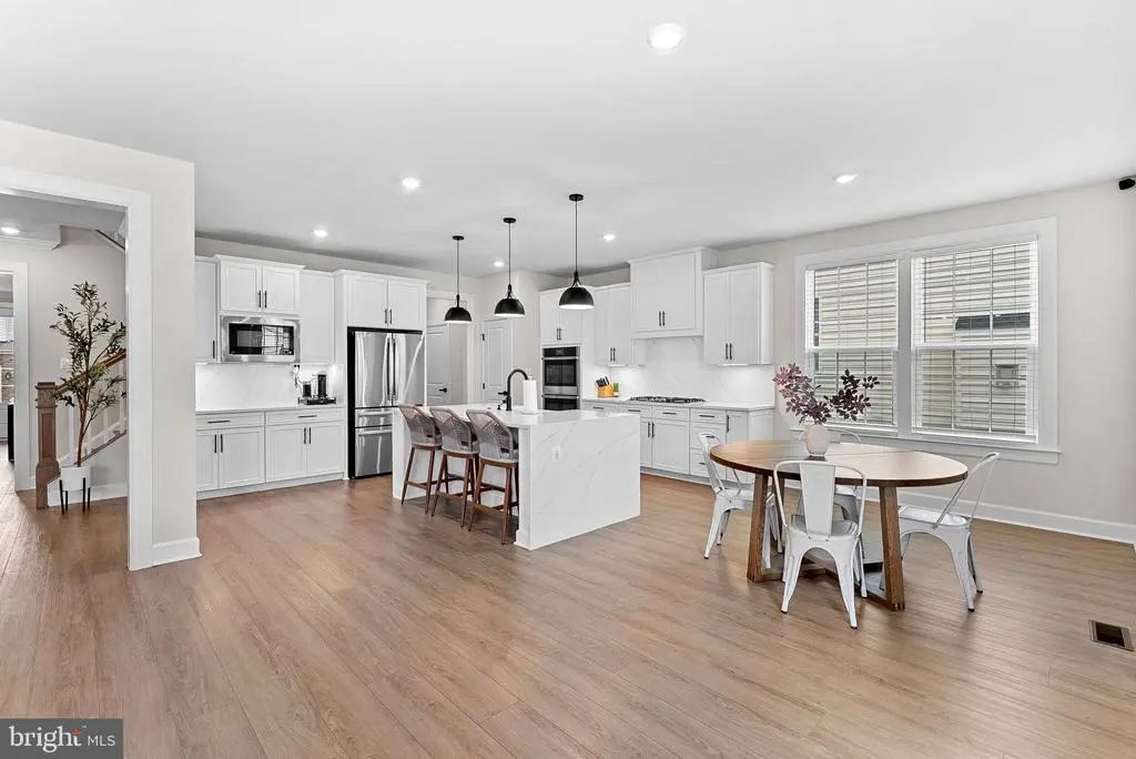 Welcome to Tuscarora Crossing! This one-year-young single-family home showcases the Baldwin floor plan, offering three finished levels, 5 bedrooms, 4.5 bathrooms, and nearly 4,500 square feet of luxurious living space filled with upgrades throughout. Step into the elegant foyer, where a stylish office makes an immediate impact. A powder bath with linen closet and coat closet complete the entryway before leading into the open-concept main level. Here, you’ll find a formal dining room, sun-filled family room with additional windows and fireplace complimented by floor-to-ceiling stone. breakfast area, and a truly stunning gourmet kitchen. The kitchen features abundant cabinetry, quartz countertops extended up to the backsplash, a waterfall island, ceramic white-apron farmhouse sink, pendant lighting, hardwired under-cabinet lighting, upgraded stainless-steel appliances, and a walk-in pantry. Off the two-car front-load garage, a mudroom with hooks, storage, and an additional coat closet keeps daily life organized. The entire main level is finished with luxury vinyl plank flooring. From the family room, step out to a large, full Trex covered deck complete with a striking floor-to-ceiling stone fireplace and mantle. The deck overlooks a spacious backyard - perfect for entertaining, letting the dog run, or giving kids plenty of room to play. Upstairs, oak stairs lead to a spacious hallway also upgraded with luxury vinyl plank flooring. Two bedrooms share a Jack-and-Jill bath with quartz-topped dual-vanity sinks and a private shower/toilet space. The expansive primary suite boasts a tray ceiling, added recessed lighting, two walk-in closets, and a spa-like bath with quartz-topped dual vanities, soaking tub, upgraded tile, and a frameless glass shower. A convenient laundry room with an added sink and cabinetry is located nearby. A fourth bedroom with its own walk-in closet and full quartz-topped vanity bathroom completes the upper level. The finished basement offers upgraded carpeting, a large recreation area, and an impressive wet bar with wine fridge, sink, dishwasher, shelving, and cabinetry - perfect for entertaining. The rec area is also wired for a projector! A fifth bedroom with walk-in closet and full bath, plus a massive storage room, round out the lower level. Community amenities currently include a tot lot, fire pit, and a walking path connecting you to the W&OD trail. Perfectly located off Route 7, this home is within walking distance to Village at Leesburg shopping, dining, and entertainment. Enjoy being just five minutes from the Leesburg Outlets, 10 minutes from Downtown Leesburg, and under 10 minutes from One Loudoun. This Tuscarora Crossing beauty combines thoughtful design, high-end finishes, and an unbeatable location - ready to welcome you home!