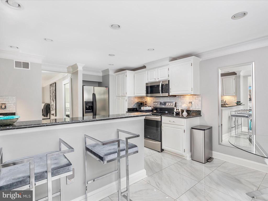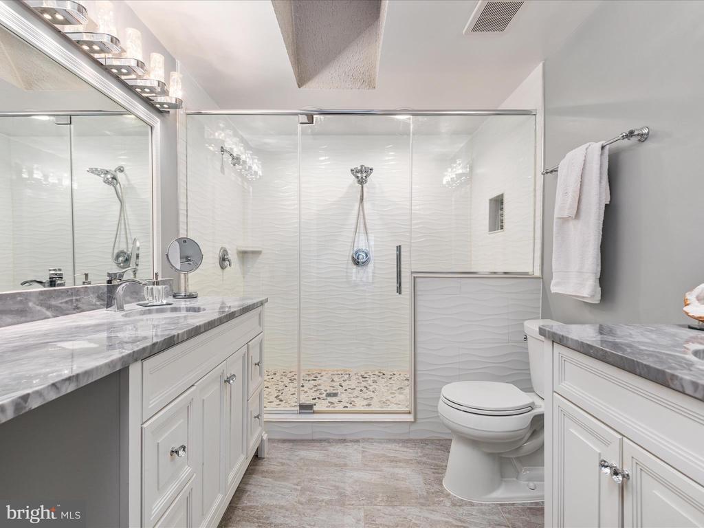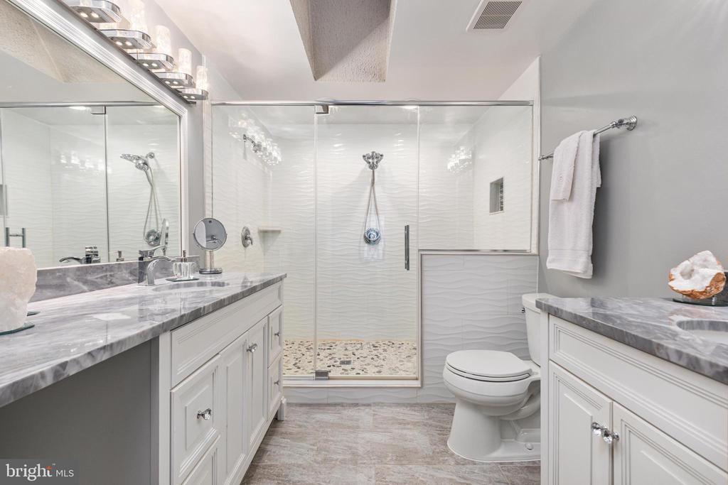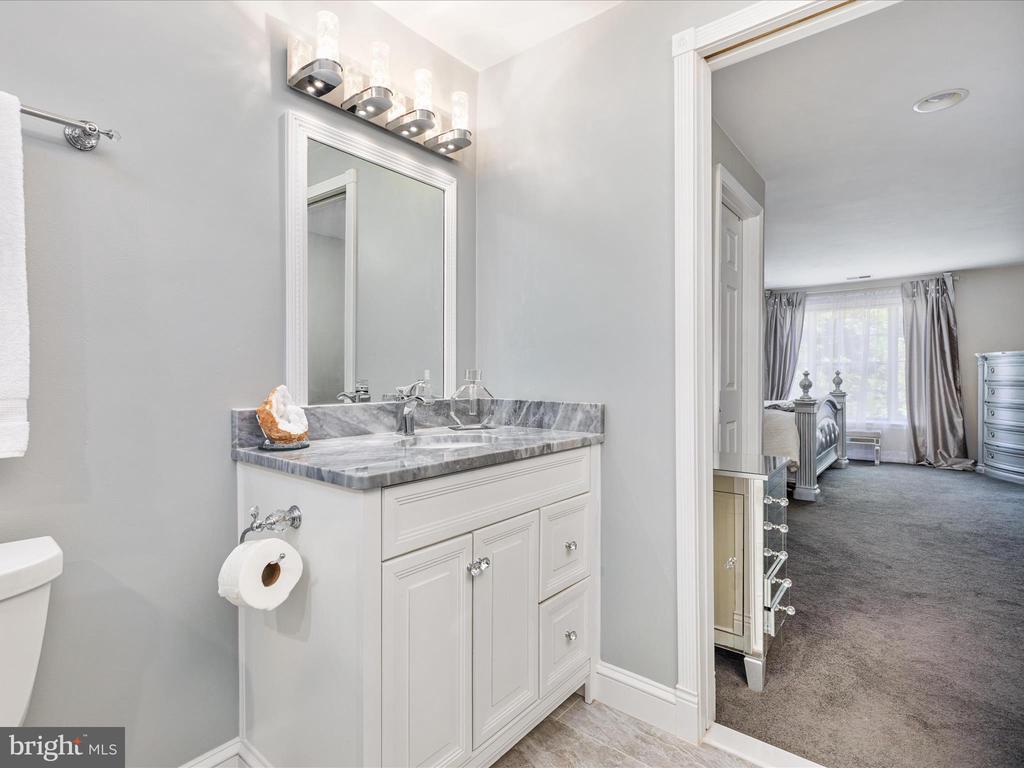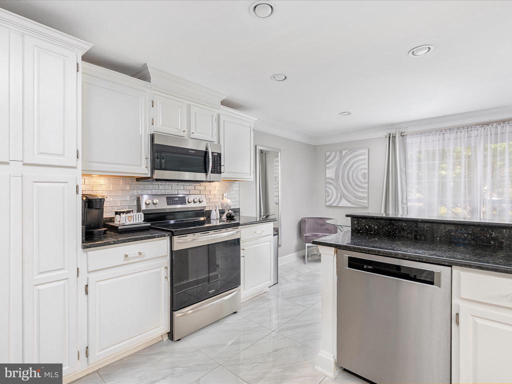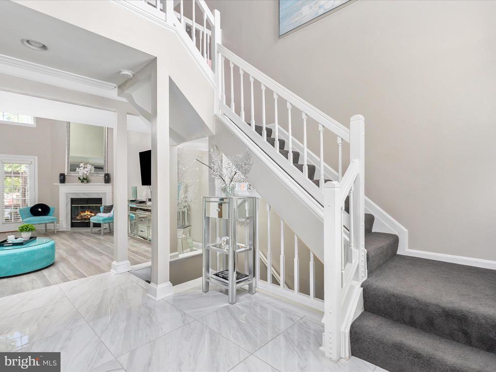 AMAZING OPPORTUNITY HERE WITH AN IMPROVED PRICE - Discover an extensive remodel of the largest floor plan in Miller & Smith’s highly sought-after Z Homes. This upgraded Laurel model spans three fully finished levels, designed with comfort, functionality, and contemporary flair in mind—showcasing thoughtfully reimagined spaces and high-quality finishes throughout. A striking two-story foyer and living room set the tone with crystal chandeliers, custom moldings, designer lighting, and an unforgettable modern style. The light-filled dining room, brand-new powder room, and updated kitchen shine with polished porcelain flooring. The newly opened connection between the kitchen and living room enhances both everyday living and entertaining ease. Upstairs, two generously sized bedrooms each feature abundant closet space and private baths. The redesigned primary bath is a true retreat, boasting a spa-like experience with dual vanities and an oversized walk-in shower with designer tile—bringing today’s most desired upgrades home. The lower level has been fully transformed, featuring all new flooring, a stone bar cellar with inlaid glass shelving, indirect lighting, and a mirrored stone backsplash above the wet bar. A second fireplace warms this inviting entertaining space, which also includes a third bedroom, full bath, and a versatile recreation room—perfect for a home theater, gym, or private office. Step outside to a large deck and fenced backyard that backs to open common area, providing both privacy and outdoor enjoyment. Located in the heart of Ashburn Farm, this home is part of a community celebrated for its lifestyle amenities: three outdoor pools, multiple sports fields and courts, playgrounds, walking and biking trails, and a vibrant neighborhood calendar. With quick access to the Toll Road and Route 7, plus nearby shopping, dining, and recreation, this is truly one of Ashburn’s most desirable places to call home. This home blends luxury, convenience, and community—a rare find in today’s market. Don't think twice about this rare find of contemporary elegance! Extensive updates include - New HVAC 2024, Water Heater 2025, New Roof & Skylights 2017, Stove, Dishwasher & Microwave 2021, Remodeled Primary Bath 2020, Newer Carpeting & Paint, Driveway replaced in 2022, New lighting, Freshly painted exterior, deck & so much more... Seller willing to remove Bourbon wall hanging in recreation room if desired.