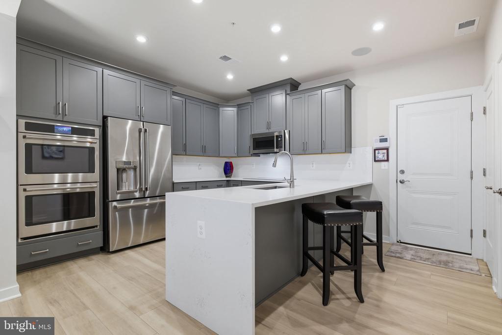 Location, location, location — just steps to ONE LOUDOUN’s dining, shopping, entertainment, and Saturday farmers market. Premium quality Stanley Martin new build (2023) townhome with $33K in high-end Tailored Design Collection upgrades. Flexible layout with an upper-level den that can convert to a third bedroom. The gourmet kitchen features a GE Café smart Wi-Fi appliance suite — double wall oven with precision cooking modes, large induction cooktop for fast, responsive heat, built-in microwave, French-door refrigerator with temperature-controlled zones, and ultra-quiet dishwasher — all app-controlled. MSI Carrara Marmi waterfall-edge quartz island, Sonoma Boulder soft-close cabinetry with pull-out trash bins, and a Maiolica White Gloss backsplash complete the modern design. The primary suite includes a walk-in closet and spa-inspired ensuite bath with dual quartz vanities and an oversized heavy glass shower with full-height Orchid Atlas tile. Secondary baths feature quartz tops, designer tile, and Sterling comfort-height toilets. Additional upgrades include luxury vinyl plank flooring, plush Shaw carpet, custom closet shelving, an accessible upper-level laundry, and a fully finished, painted one-car garage with shelving and Wi-Fi opener. Spacious balcony is perfect for enjoying the outdoors at home. Zebra blinds throughout provide light control and privacy. Smart home wiring with Cat6, HDMI prewire, video doorbell, pre-wired speakers, and Kichler LED recessed lighting throughout. Close to Metro access, Dulles International Airport, the Washington & Old Dominion Trail, and less than 30 minutes to Tysons Corner, Capital One Hall, Wolf Trap Center for the Performing Arts, Great Falls Park, and more.
