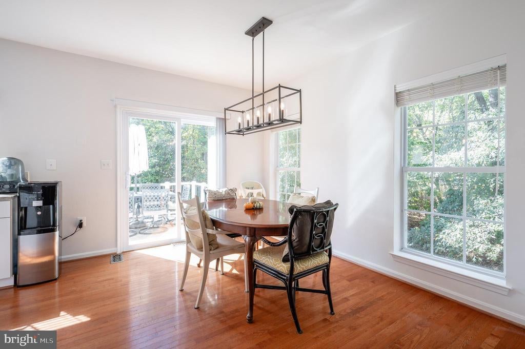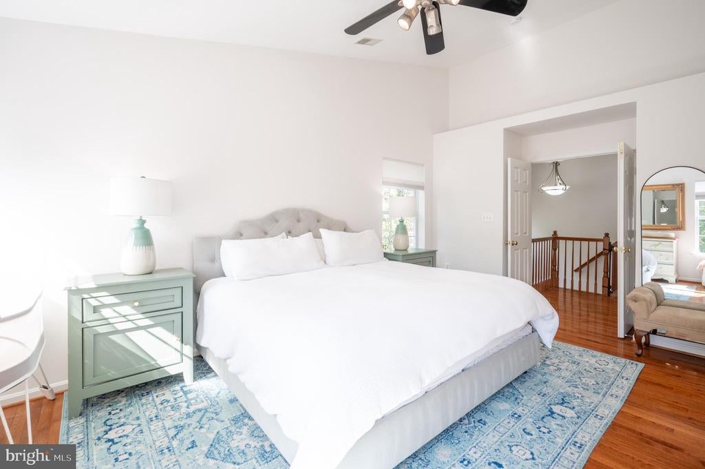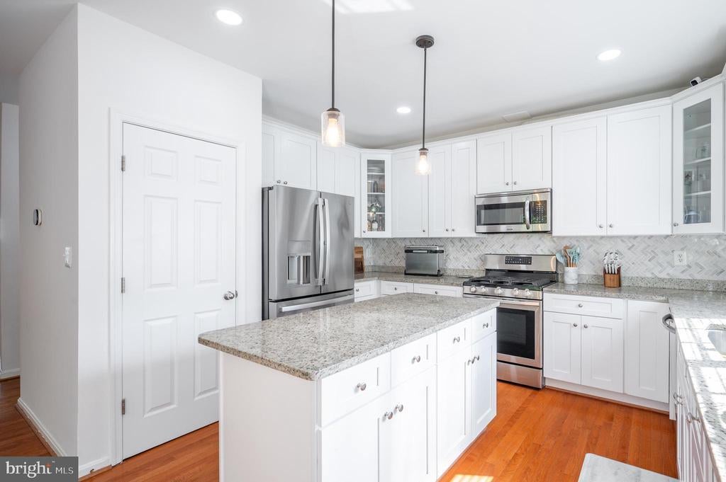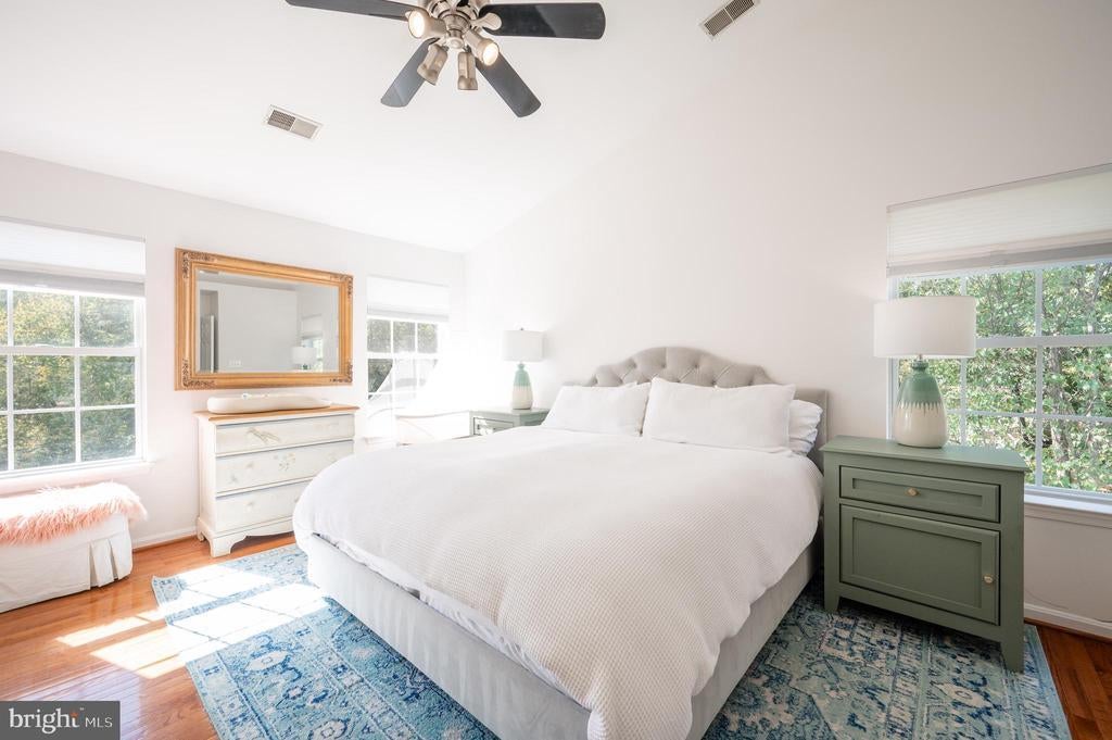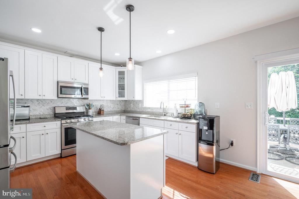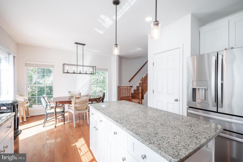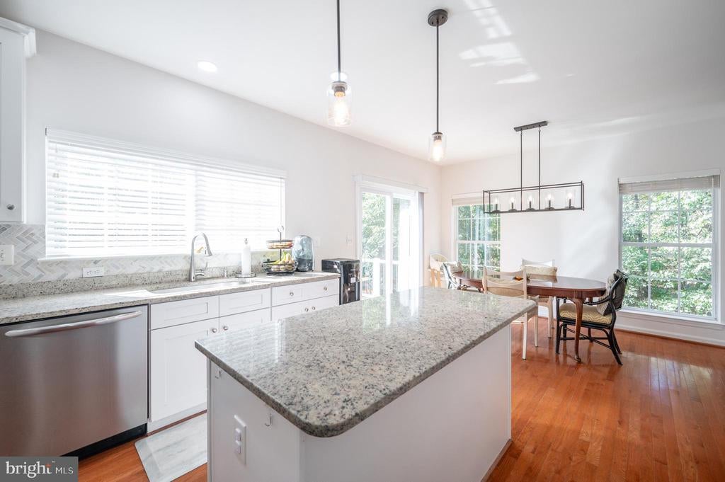 Stunning End Unit Townhome Nestled in the Woods in Ashburn Farm. Welcome to this beautiful brick front end unit, four bedroom, three and a half bath townhome with a two car garage, ideally located in the sought after Ashburn Farm community. Offering over 2,300 square feet of living space, this home combines elegant updates with a tranquil, private setting. Step into a two story foyer leading to a bright, open main level with hardwood floors, spacious living and dining rooms, and an upgraded kitchen in 2017 featuring farm style sink, beautiful backsplash, stainless steel appliances, granite countertops, white cabinetry, and a large island perfect for entertaining. The kitchen opens to a sunlit dining room with views of trees windows and access to a large deck overlooking the wooded backdrop. Upstairs, gleaming hardwood floors flow throughout three generous bedrooms, including a primary suite with vaulted ceiling and a spa-like bath showcasing dual vanities, soaking tub, separate shower, and walk-in closet. A convenient upper-level laundry and full hall bath complete this floor. The walk-out lower level features a versatile recreation room, a fourth bedroom or guest suite, full bath, and direct garage access. Step outside to enjoy a private fenced yard surrounded by nature. Leaf gutter guards, bright recessed lighting, and window blinds covering all windows are added bonuses. Just minutes from the W&OD Trail, Trailside Park, community pools, tennis and volleyball courts, the Ashburn Library and walkable to schools, this move-in ready townhome offers the best of comfort, convenience, and serene wooded views. This is truly a unique opportunity! HVAC 2021, Hot Water Heater 2020, Refrigerator 2024, New deck 2024.