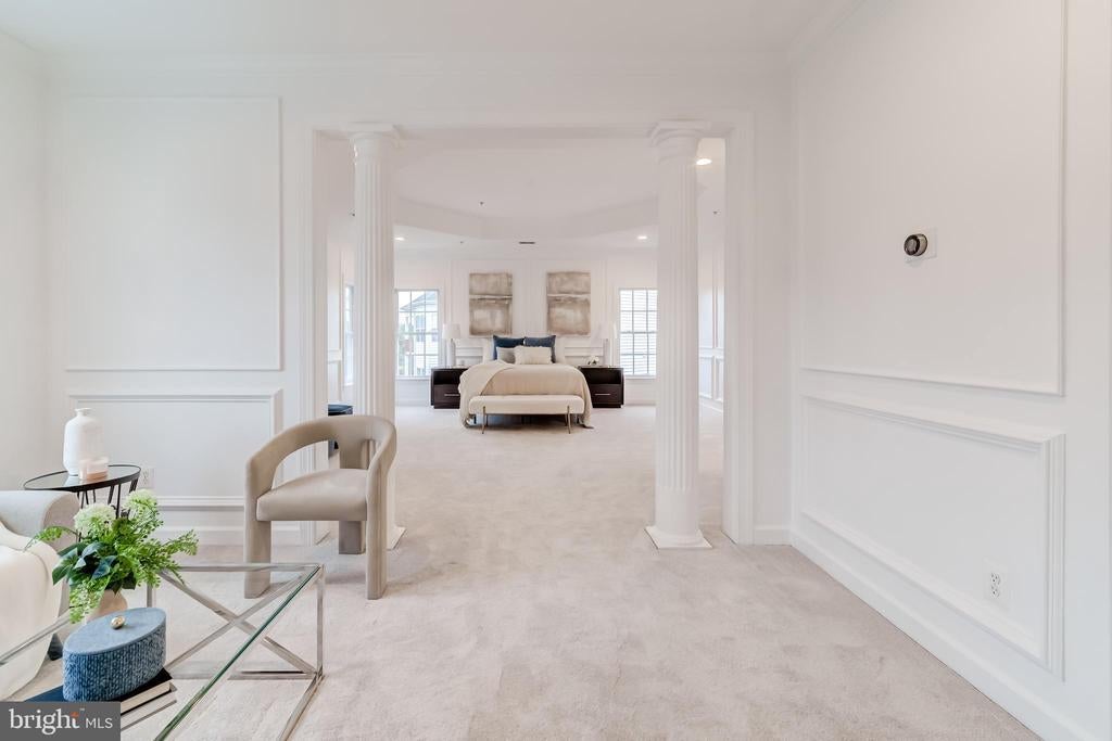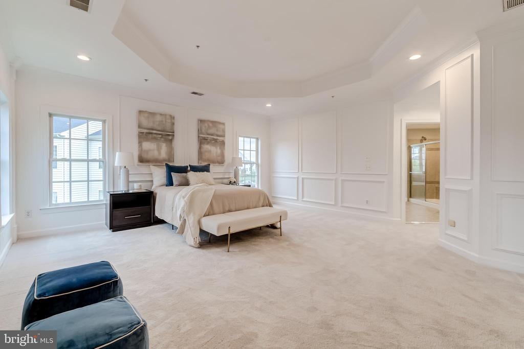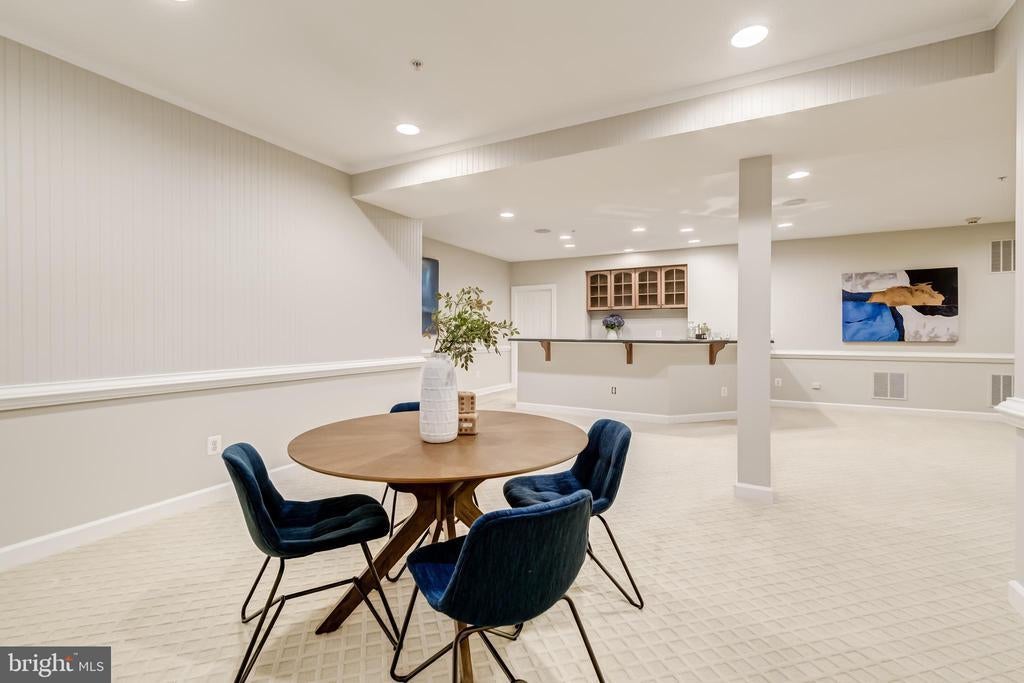 Built-Ins, Carpet, Chair Railing, Crown Molding, Recessed Lighting, Upgraded Countertops, Wainscotting, Walk-in Closet(s), Wet Bar/Bar, Wood Floors