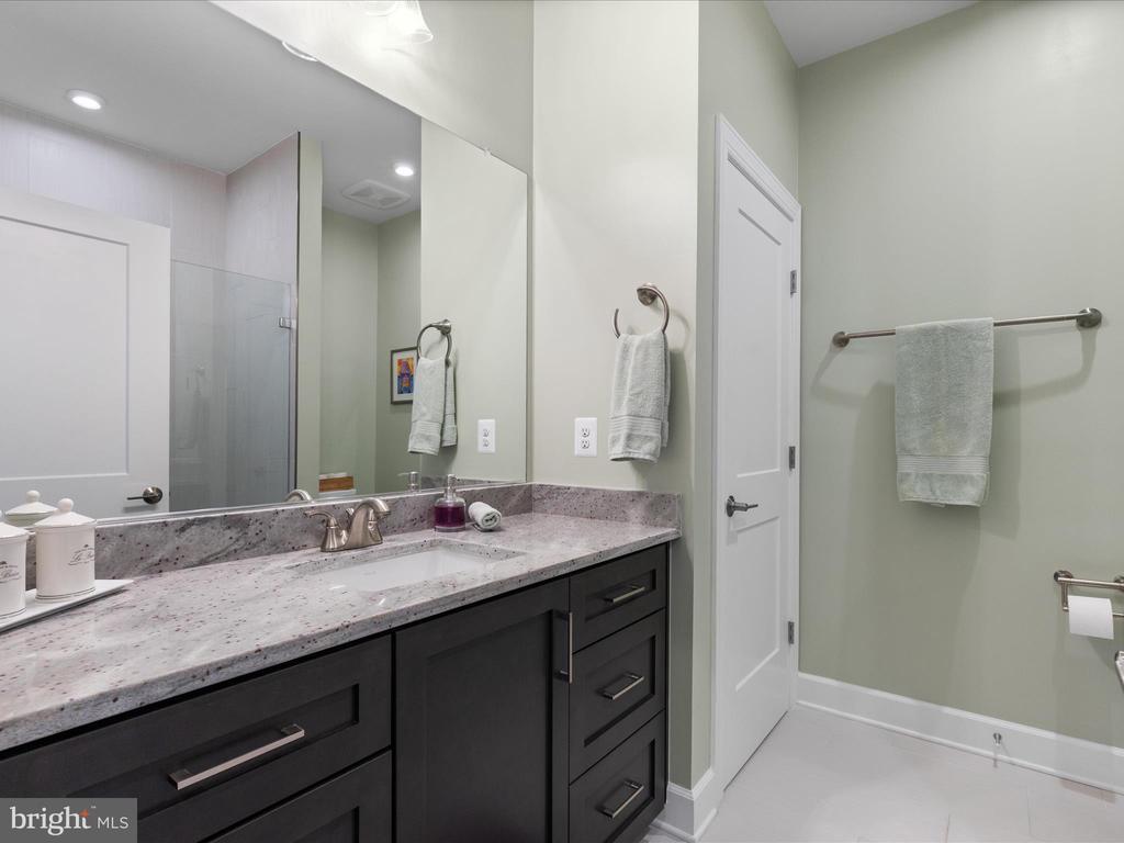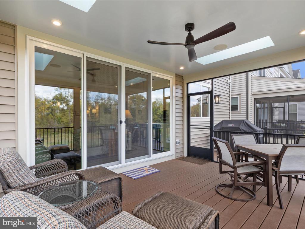 Welcome to this exceptional, nearly new Delano model by Miller & Smith, offering more than 4,100 square feet of beautifully upgraded living space on a coveted lot backing to peaceful woods. Built in 2023, this home was designed for both elegance and ease, where every detail feels intentional, from the full service elevator providing access to all levels, including the garage, to the high end finishes that add a sense of luxury throughout. Step inside to find luxury plank flooring under soaring 10 foot ceilings, setting a bright and airy tone from the start. The spacious entryway, framed by a welcoming covered porch, hints at the charm and comfort that await inside. At the heart of the home lies a truly impressive chef’s kitchen, the kind that inspires everything from cozy breakfasts to grand holiday feasts. White cabinetry stretches to the ceiling, quartz counters gleam beneath soft lighting, and the bold blue island adds a splash of personality and plenty of seating. JennAir stainless steel appliances, including an induction cooktop, bring form and function together in perfect harmony. Just beyond, a generous prep kitchen and butler’s pantry feature additional cabinetry, granite counters, a beverage fridge, and a sink, ideal for both entertaining and everyday ease. French doors open to reveal a large walk in pantry, completing this dream worthy culinary space. The main living area offers warmth and versatility, with a cozy gas fireplace anchoring the family room and sliding glass doors leading to a charming screened porch, a delightful spot to savor morning coffee or evening breezes. A formal dining room stands ready for memorable gatherings, and the thoughtfully designed powder room offers accessibility with style. The mudroom, with custom shelving and a perfect nook for a bench or pet station, keeps daily life running smoothly, while the garage boasts an ultra quiet insulated door and extra storage. Plantation shutters throughout the main and upper levels add timeless appeal. Upstairs, a second family room invites you to create the perfect home office, reading nook, or hobby retreat. The luxurious primary suite feels like a private sanctuary with a custom walk-in closet with direct access to the laundry room and a spa-inspired bath featuring a frameless glass shower, designer tile, grab bars, and bench seating. Two additional bedrooms on the opposite wing offer generous closets and share a bath with granite counters and a linen closet. The finished lower level was made for entertaining with a stunning custom bar that feels like your favorite neighborhood pub, built-in cabinetry, room for games and gatherings, and plenty of storage. Outdoors, the beauty continues with professional landscaping, a new stone walkway, and underground drainage for year-round ease. The screened porch, complete with skylights, overlooks a tranquil garden framed by mature woods and direct trail access, a peaceful, storybook backdrop for your everyday life. Modern conveniences include integrated smart home features, a Lutron lighting system, EV charger, motorized shades on the kitchen window, doors to the deck and primary bedroom, and built-in ceiling speakers in the kitchen and porch, because the most beautiful homes should sound as good as they look. Birchwood at Brambleton offers a lifestyle designed for adults aged 55 and better. With two clubhouses, there's plenty to do. The amenities include indoor and outdoor pools, Pickleball & Bocce courts, fitness center, greenhouse & garden area, fishing pier with catch and release fishing, demonstration kitchen, theater, art studio, and even a golf simulator. Scenic trails weave through ponds, gardens, and green spaces, while social events and clubs bring neighbors together in true Brambleton spirit. With easy access to shopping, dining, the Silver Line Metro, and all of Brambleton’s vibrant town center amenities, this location blends tranquility and connection in perfect balance.
