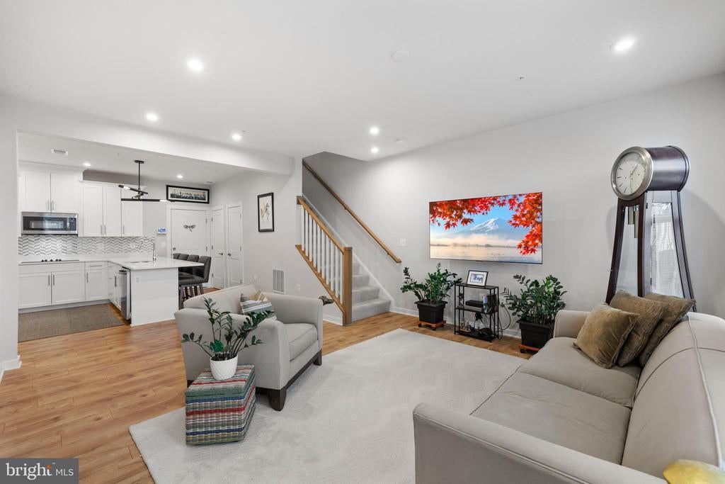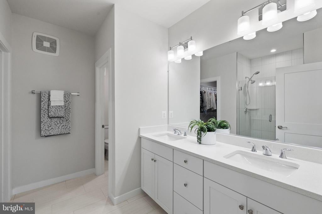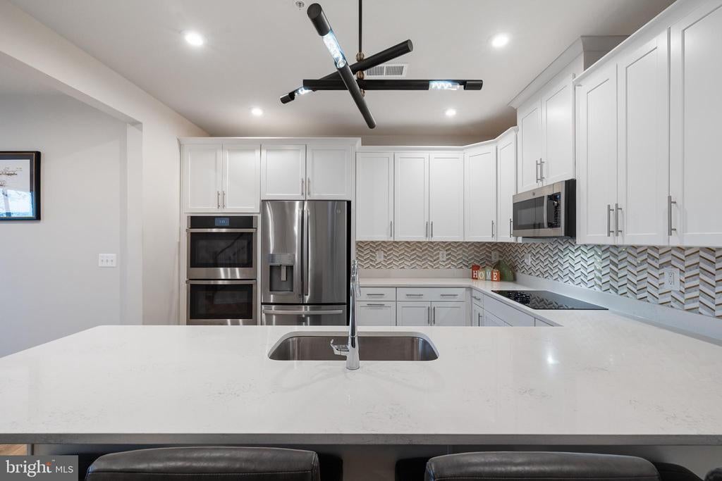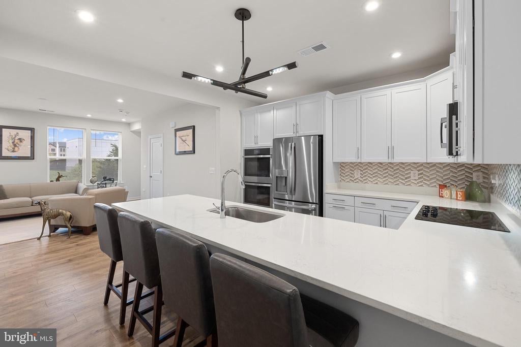 Walkable to One Loudoun (≈0.5–1.0 mi) with a tree-lined front outlook. 2022 3BR/2.5BA townhouse-style condo; rear-entry garage and semi-private balcony. Gourmet kitchen (double ovens, quartz, separate cooktop), open main level, upstairs laundry, smart thermostat; on-site Ashbrook Place dog park. Two-level townhouse-style condo in Ashbrook Place with a rear-entry garage and a semi-private balcony. Main level centers on an open kitchen with quartz counters, a separate cooktop, double wall ovens, island seating, and a custom backsplash. Upper level includes the primary suite with two walk-in closets and a bath with dual sinks, a large shower with bench, and a private water closet, plus two additional bedrooms, a hallway bath, and laundry. 2022 construction provides current systems and efficiency; garage floor is epoxy. Smart thermostat conveys. Commuter notes: approx. 0.95 mi to One Loudoun Park & Ride with Loudoun County Transit service to Ashburn Metro (Silver Line); convenient access to VA-7 and Loudoun County Pkwy. Nearby anchors include One Loudoun (key spots 0.5–1.0 mi; Trader Joe’s 0.51 mi, Barnes & Noble 0.96 mi), Topgolf ( 0.75 mi), and Whole Foods at Belmont Chase