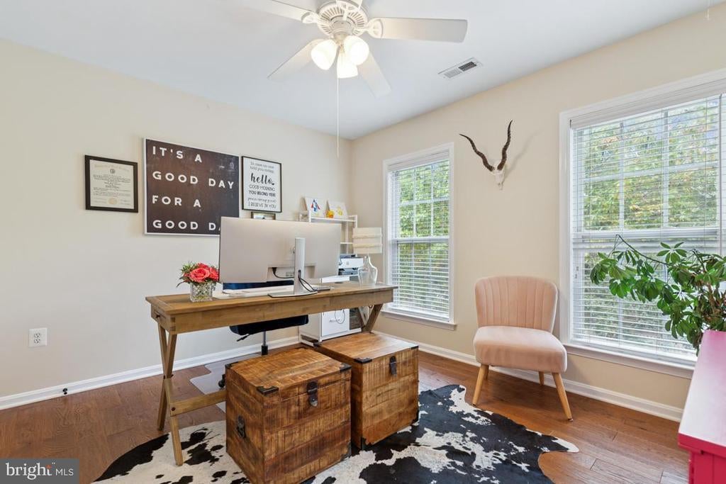 Welcome home to this wonderful 4 bedroom, 3.5 bath with a large 2 car garage. Caruso Homes Jamestown model nestled in the highly sought after community of Belmont Greene. This charming community features white picket fences, mature trees and quick access to shopping, schools and all commuter routes. Loads of updates include fresh paint throughout, a completely remodeled primary bathroom & walk-in closet (2025), new roof (2021), HVAC (2018), insulation (2024). Enjoy cooking your favorite meals in this gourmet kitchen featuring white cabinetry, granite countertops and a breakfast room. Situated off the kitchen is the open and bright family room with a gas fireplace and built-ins. Completing the main level is the formal dining room, home office with french doors and a half bathroom with updated flooring. Ascend upstairs to the primary suite featuring an amazing remodeled primary bathroom with separate soaking tub, walk-in shower, double vanity, tile flooring and a custom walk-in closet. Completing the upper level are three additional spacious bedrooms and a remodeled hall full bathroom. Venture downstairs to hang out and watch your favorite movies and sports in your spacious walk up level recreation room. Also featured on the lower level is a large den or "5th" bedroom and a full, updated bathroom. Enjoy your fully fenced rear yard with a large slate patio and a detached 2 car garage with shelving for storage. Zoned for the school pyramid of Stonebridge High, Trailside Middle, and Belmont Station Elementary makes this a home run place to live! Easy access to the Greenway/Dulles Toll Road, Route 7, Route 28, and the Silver Line Metro Station. Close to great shopping, Dulles International Airport, and more. Amenities include a pool, tennis courts, parks, and a volleyball court. Just minutes from Trailside Park and W&OD Trail.