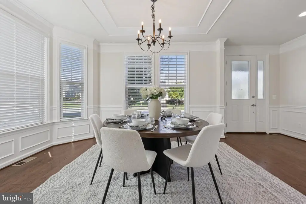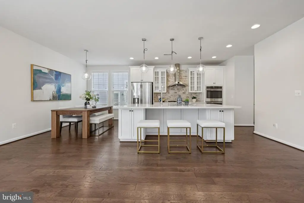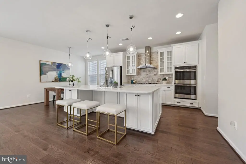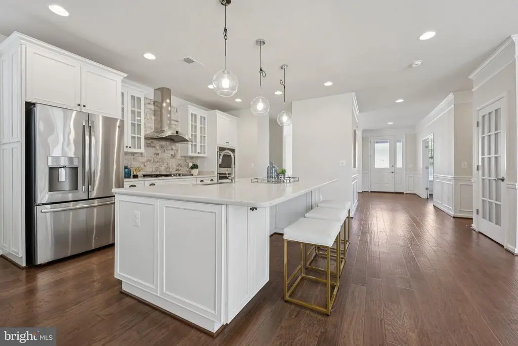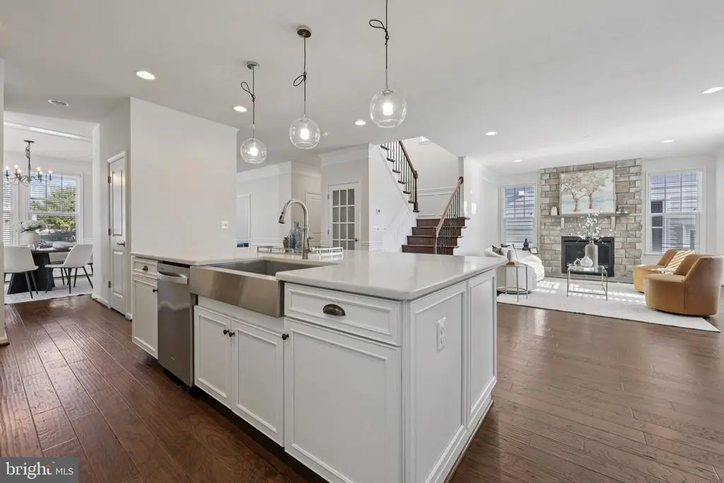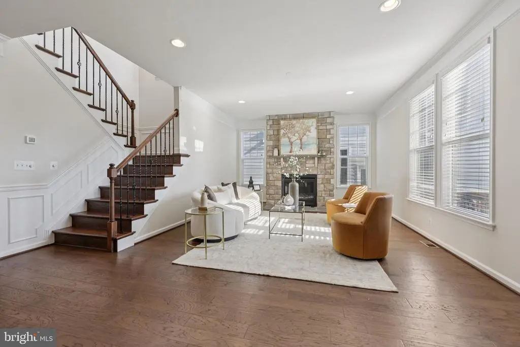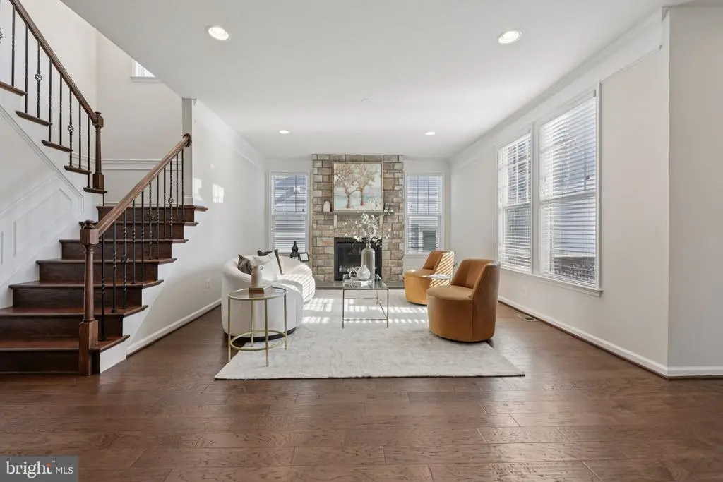 Middleway model by Van Metre featuring 5 bedrooms and 4.5 baths in the desirable Meadowbrook community. *** The main level offers a bright foyer, a private office with glass French doors, and a spacious formal dining room. The chef’s kitchen showcases marble countertops, an oversized island, stainless steel appliances, and a farmhouse sink. It opens to a cozy family room with a gas fireplace and stone surround. A walk-in pantry and butler’s pantry provide excellent storage and prep space. The powder room is tucked off the kitchen, and the laundry room is conveniently located near the garage. Hardwood floors extend throughout the main level. A two-car garage includes extra driveway parking in the rear. *** Upstairs features four generously sized bedrooms, three full baths, and a flexible loft area. The expansive primary suite includes two walk-in closets and a luxurious bath with dual vanities, soaking tub, and a large glass-enclosed shower. *** The finished lower level offers a large rec room, full bath, a legal bedroom with egress window, and plenty of storage. Walk-up stairs lead to a fully fenced backyard, ideal for pets or play. *** Community amenities include Odyssey Park with a pool, tot lots, grilling stations, a fire pit lounge, and a community garden. *** Close to charming downtown Leesburg with easy access to shopping, dining, and entertainment. Quick commute to major routes including the Dulles Greenway and less than 30 minutes to Dulles Airport. Enjoy Loudoun County’s scenic beauty, parks, wineries, and farm destinations.