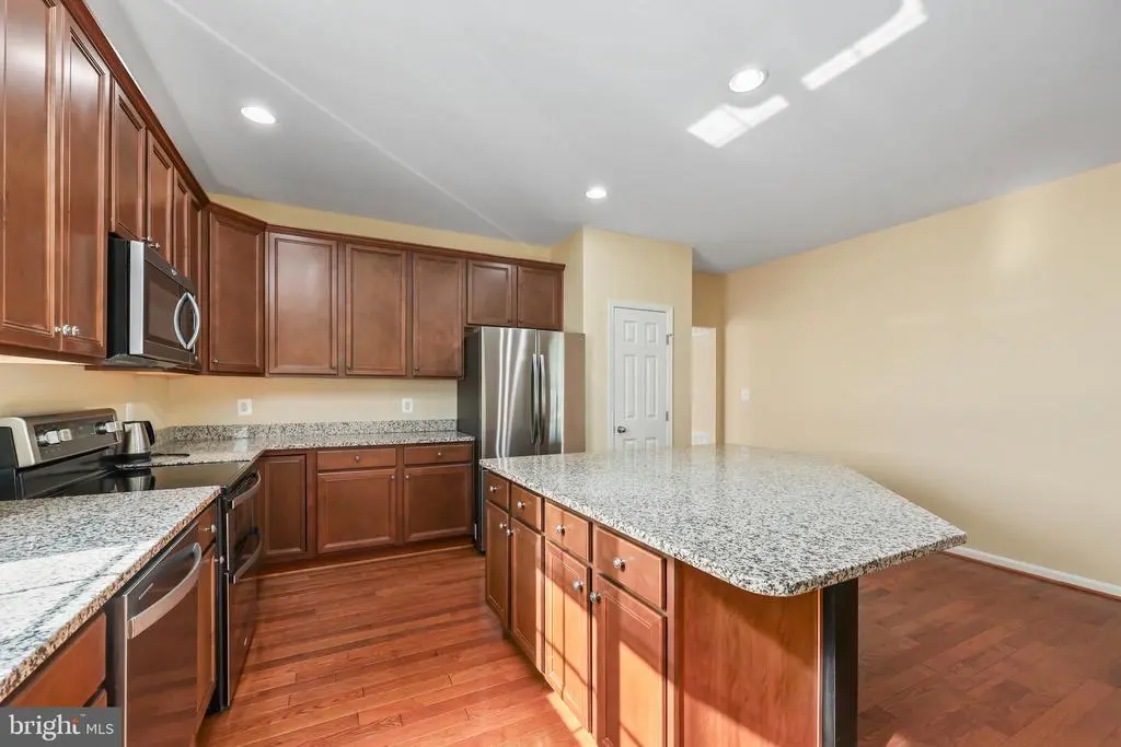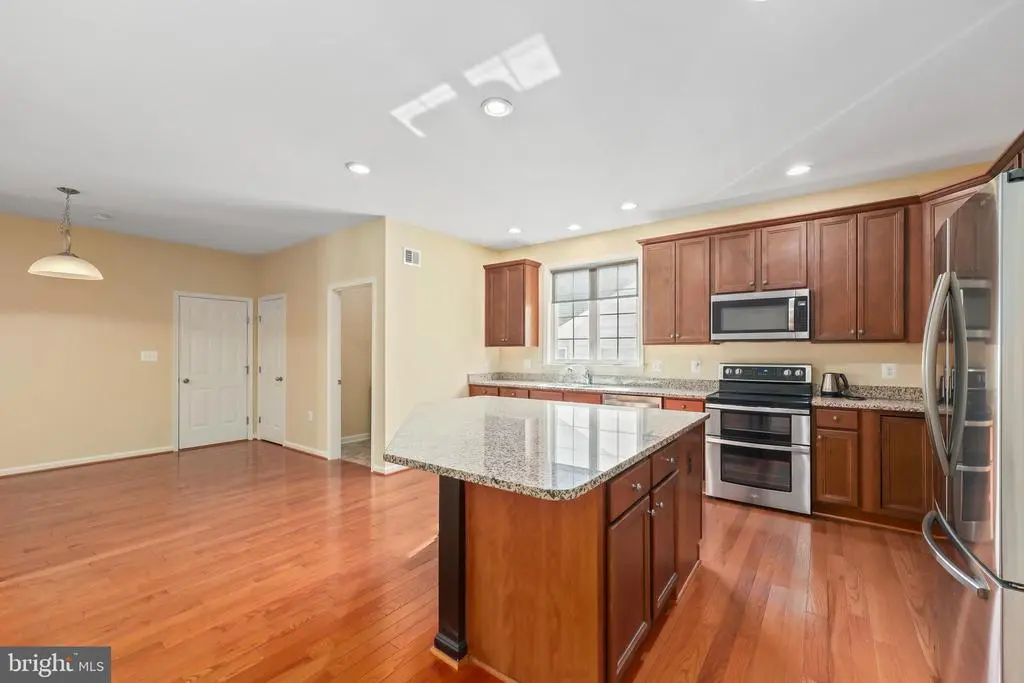Sought-After One-Level Living! Spacious single-family home offering over 2,300 finished square feet on one level, plus an additional 2300 sf in the unfinished basement! 4600SF TOTAL! Plenty of room to finish partially and still have ample storage. The rear two-car attached garage conveniently enters into the kitchen with large walk-in closet right by the door for your Costco runs! Best of all, full lawn maintenance is included in the HOA fee, no more mowing, mulching or trimming! (Not a 55+ community.) Truly a move-in ready home with recent updates throughout: New hardwood flooring extended from the kitchen into the family room. Kitchen with abundant cabinetry, pantry, and large center island with granite counters. All new stainless steel kitchen appliances in 2024. Entire interior freshly painted. New plush carpeting in living room, dining room, hallway, and all three bedrooms. Enjoy outdoor living on the rear deck, accessible through sliding doors in the family room—perfect for cookouts or relaxation. The front of the home overlooks a treed community green space with a paved walking trail that circles the neighborhood and winds past scenic Sleeter Lake. The trail connects to Franklin Regional Park, featuring a swimming pool, sports fields, pickleball courts, and a performance and arts center. A pedestrian tunnel also provides easy access to historic Round Hill, home to charming community events year-round.