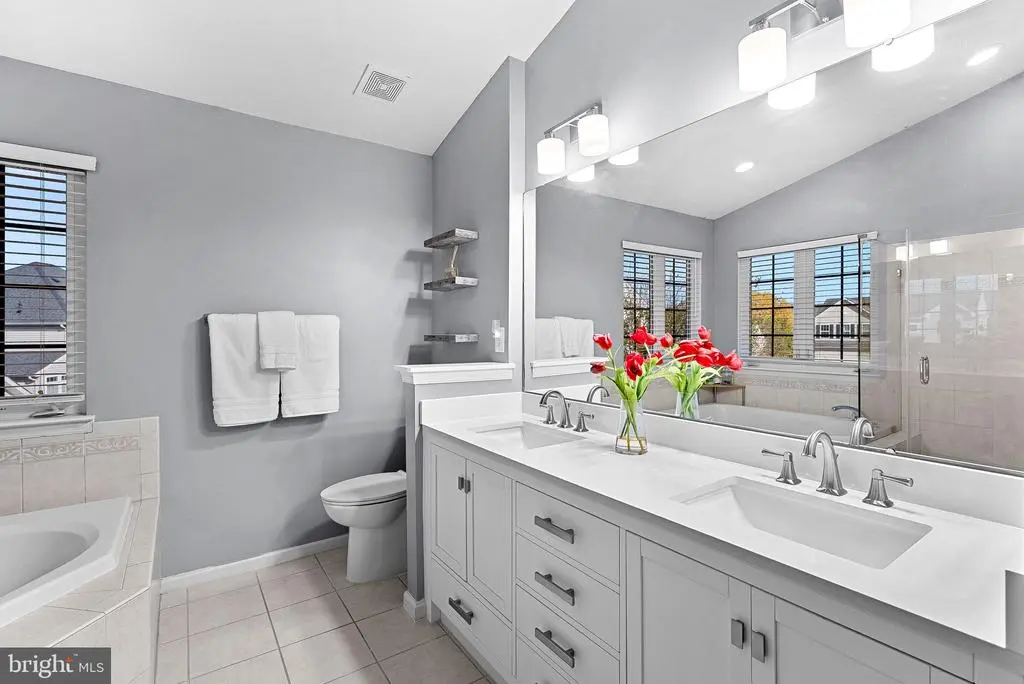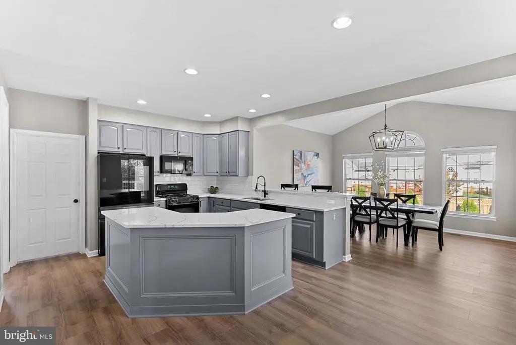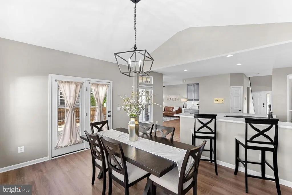 This home in the community of New Town Meadows is ready for its new owner! Step into the welcoming main level featuring luxury vinyl plank flooring throughout and 9-foot ceilings. Upon entering, you'll be greeted by a living room and formal dining room combination with plenty of windows, allowing all the natural light to soar through. The kitchen is beautifully updated with gray cabinetry, quartz countertops, a modern touch faucet, and recessed lighting. The vaulted breakfast area boasts 10-foot ceilings and opens to the family room, which includes built-ins flanking a gas fireplace - perfect for both function and style. Additional main-level highlights include a washer and dryer conveniently located off the kitchen. Upstairs, the primary suite impresses with vaulted ceilings and a spacious walk-in closet. The primary bathroom features a frameless glass walk-in shower, a soaking tub, dual vanities with quartz countertops, and a linen closet. Down the hall are three generously-sized bedrooms - one featuring a modern accent wall. These bedrooms share a full hall bathroom with a tub/shower combination, vanity with storage, and an additional linen closet. The finished basement offers a variety of flexible spaces and thoughtful upgrades. A carpeted recreation area includes a custom-built play set with stairs and a slide - perfect for play or creative use. The den, ideal for a craft room, office, or work nook, features extensive cabinetry, under-cabinet lighting, wallpaper accents, and luxury vinyl plank flooring. A movable craft table/workbench adds versatility. This room also offers walk-up access to the backyard. Additional features include a large walk-in storage room, a full bathroom with a walk-in shower, and an extra room off the storage area that can serve as a workshop or additional storage. Enjoy multiple outdoor living spaces, including a newer 16x18 wood deck with built-in lighting on the stairs and a grand paver patio below. Solar-powered lights with remotes add ambiance and convenience. Perfectly situated near the heart of Lovettsville, this home offers easy access to local favorite shops, restaurants, and a short drive to multiple wineries. Enjoy nearby parks, community amenities, and quick access to the MARC train in Brunswick for an easy commute to D.C. Don't miss your chance to call this home!