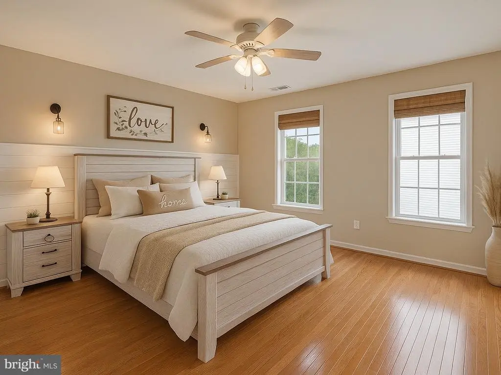 Bathroom - Soaking Tub, Bathroom - Stall Shower, Carpet, Ceiling Fan(s), Primary Bath(s), Walk-in Closet(s), Wood Floors