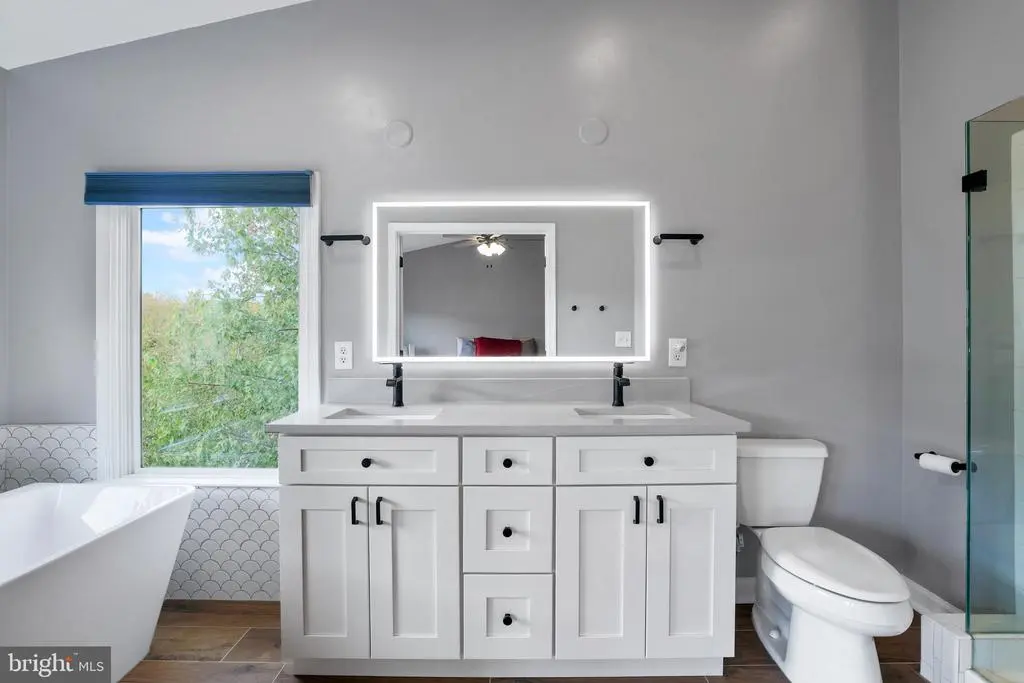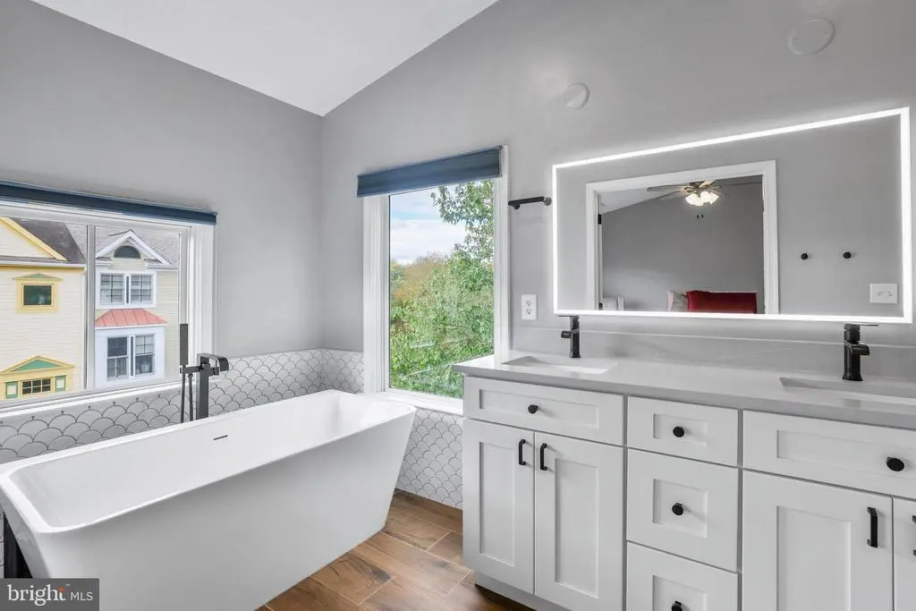 Beautifully updated end-unit townhome in Downtown Leesburg. Featuring Hardwood Flooring on All Three Levels, this 3-bedroom, 3.5 Bath, 1 Car Garage gem is within walking distance to the Restaurants, Shops, and all the Amenities that Historic Downtown Leesburg has to offer. The Main Level features a completely updated Kitchen with granite counters and stainless steel appliances (2018). Spacious Family Room with Cozy Gas Fireplace. Large Deck off Family Room/Kitchen. Large Living Room and Powder Room. Newer (2022) Windows and Doors throughout the home. Three Spacious Bedrooms on Upper Level include Primary Suite with Custom Walk-In Closet (2025) and Vaulted Ceilings. Also featuring a completely updated (2025) Primary Bath with a Soaking Tub, Custom Tile, a Double Vanity, a Walk-In Shower, and Plantation Shutters. Lower Level Finished Basement features 3rd Full Bath and Large Rec Room- plenty of Space to convert into a 4th Bedroom, Office, or simply use as your "man-cave". Walk out onto the Patio and Fully Fenced-in Yard. TONS of Extra, Unassigned Parking, both in the front and behind the home. ....Big Ticket Updates Include: All New Energy Star Windows and Doors (Marvin Infinity Fiberglass) throughout (2022), HVAC (2022), HW Heater (2018), Whole House Paint (2019), Attic Sealed, Fresh Insulation Blown plus Attic Fan (2025).