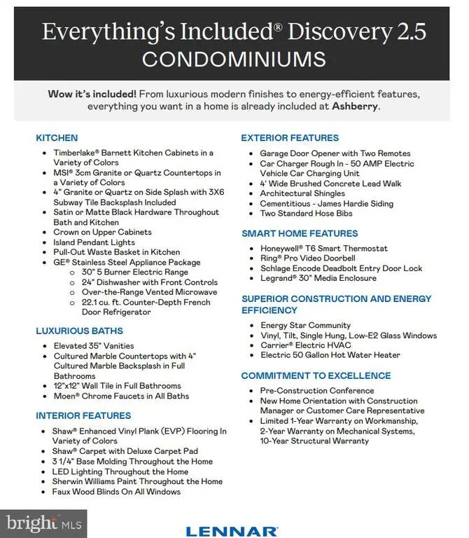 Hard hat tours available now, move-in ready November 2025! Luxury stacked townhome with 3 bedrooms and 2.5 baths with a private deck in the brand new Ashberry Community. This extremely modern and practical home has 2 levels and 1,602 sqft of living space. Enter into the open concept kitchen-dining-living area with tons of natural light, great room ceilings, and a featured fireplace. The functionally modern eat-in kitchen includes a stainless steel french door fridge with built-in shelves and a pantry. There’s tons of counter space with gorgeous details like the clean backsplash, perfect for entertaining. Up the stairs, you’ll find the functional office and bedrooms. The spacious owner’s suite is full of natural light, features a vaulted ceiling, recessed lighting, and walks-out to a 10 X 10 deck. The owner’s bathroom inspires a spa experience with a double vanity, modern finishes, and standing shower. The in-unit laundry room with washer and dryer is close to the bedrooms, keeping it extra functional. The remaining 2 bedrooms are also full of natural light and share a large full bath in the hall with a tub. There’s also tons of storage with an owner’s walk-in closet and closets in each bedroom. This home includes 1 parking space in the garage, which features an EV charging station rough-in. Also within walking distance to Old Town Manassas with its vibrant local shops, restaurants, and nightlife that regularly hosts weekend events. Stay close to the Metro DC area without the traffic or choose the Virginia Railway Express (VRE), also close by. Join a community full of first responders and teachers. Whether you’re downsizing, investing, or a first-time homebuyer leveling up, this is the perfect townhome-style opportunity with the superior construction Lennar provides. Take advantage of $20,000 in closing costs by selecting Lennar Mortgage.