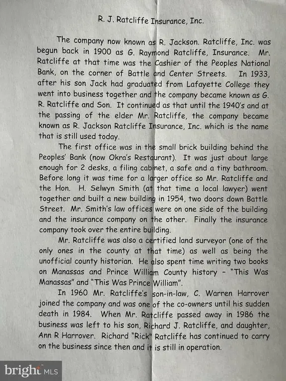 WORK SMARTER, NOT HARDER in this office building for sale in Old Town Manassas. Ideally located near shops and restaurants, within walking distance to various multiple parking lots, this office building currently has 6 offices, two open work areas and a file room with two half bathrooms. Flanked by two restaurants on either side, this brick front office also presents an excellent opportunity for mixed use development with office, retail or a restaurant on the first floor and an apartment above or the flat roof easily lends itself to a rooftop bar like the one next door. This office building is 3,057 SF divided equally between two levels with the entire property sitting on 1,650 SF of land. Zoned B-3, City Center Commercial (Old Town District). Tax ID#: 101/01 000/387.