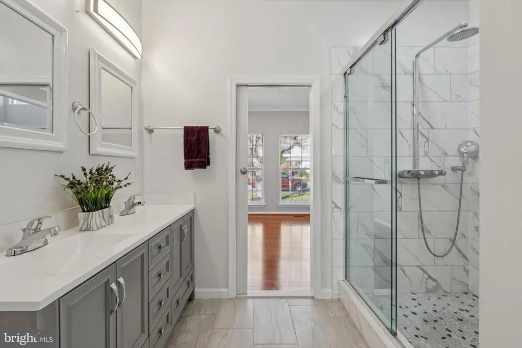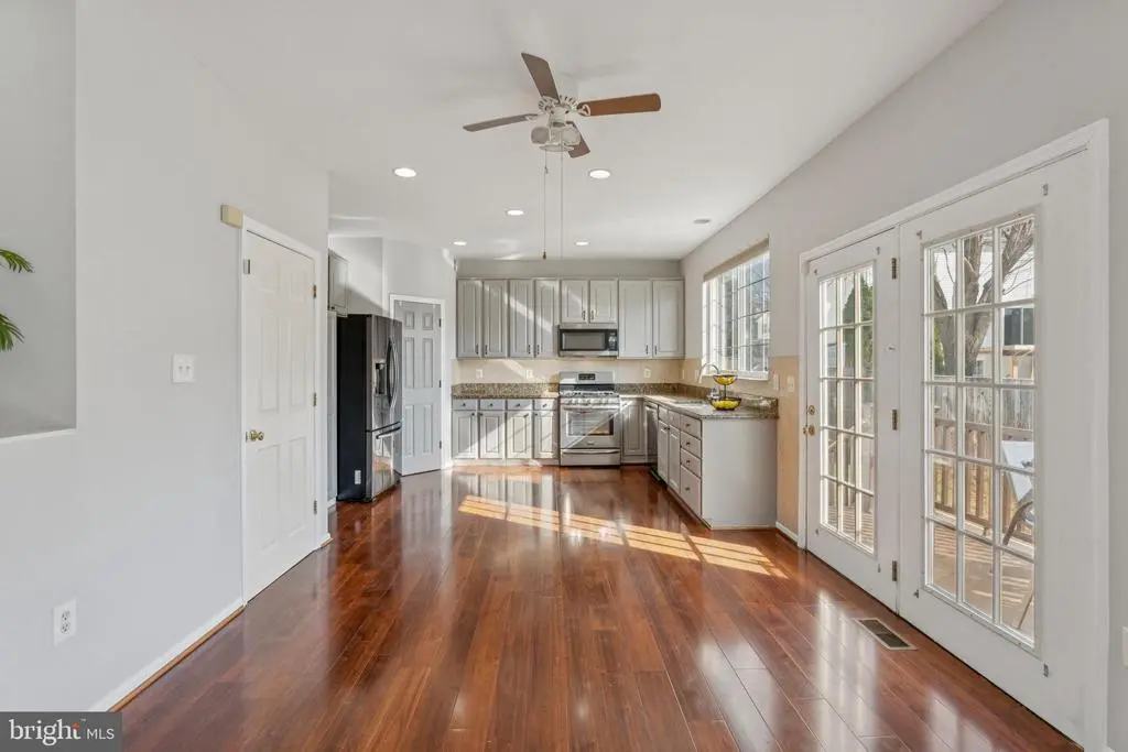 BEAUTIFUL brick front home in desired Blooms Crossing. Welcome in to the 2 story foyer and open floorplan with hardwood floors throughout the main level. Home has been freshly painted on all 3 floors. To the left you will see a formal dining room with chair/picture and crown moldings. To the right is an elegant formal living room or home office with access to a FULL bath room with dual vanity and large walk-in shower and designer tile. Main level bedroom with ceiling fan and additional access to the full bath. Then you are greeted by the huge family room with gas fireplace with mantle and added recessed lighting and fan. Kitchen offers 42" painted cabinets, granite counters, corner pantry, huge window allowing for lots of natural light and a large area for a future island. Breakfast area with French door that leads out to a small deck, enough to enjoy morning coffee, and stairs to the level back yard. Laundry room with access to the garage finishes off the main level. Upstairs you will find a primary bedroom with cathedral ceilings and dual wall-in closets. Primary bath with walk-in shower, dual vanity and linen closet. Nice sized secondary bedrooms and a hall bath. Brand new carpet on the upper level. The finished lower level offers a HUGE rec-room with laminate floors and walk-up access to the the rear yard. Large kitchen-ette with tile floors and additional dining/entertaining area, full bath and a second laundry. Unfinished area left for storage. additional updates include new roof 2015, HVAC 2022, hot water heater 2024 -- all this with convenient access to the VRE, shopping, restaurants, Old Town, parks and so much more -- too much to list it all.