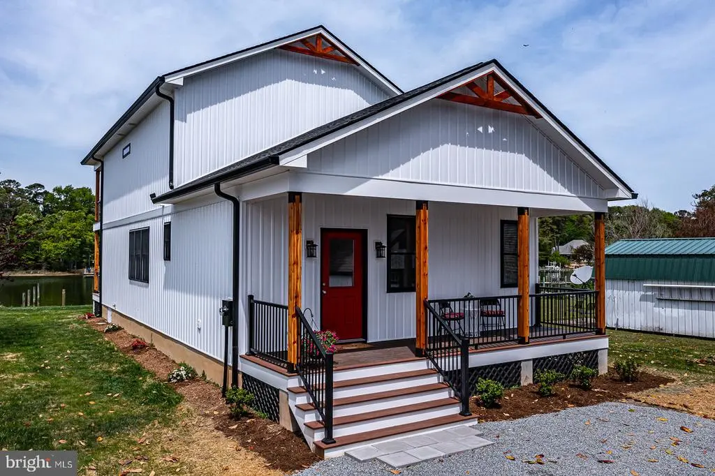 A truly unique opportunity to own a fantastic new home on Main Street in the heart of Reedville. The attributes of this newly built house blend gracefully with the historical style homes on the street. Outside features include board and batten siding, black framed windows, composite decking and beautiful cedar columns and custom built cedar pediments in the roof gables. There are two 8' x 24' covered porches (upper and lower) along the entire width of the home giving remarkable water views. A 12 x 16 shed will provide all the storage you need. The property includes a newly constructed bulkhead and an 80’ dock just waiting for your boat. In the interior, the open concept first floor great room looks over the water and opens to the lower level porch. There are two master bedroom suites, each beautifully tiled with a double vanity and walk-in closets. One MBR is on the first floor, and the other on the second floor. The one on the second floor spans the entire width of the house with doors opening onto the huge upper level huge porch overlooking Cockrell Creek. All three bedrooms have a full bath, so no sharing of bathrooms. Other interior features include 9' ceilings, upscale LVP maintenance free flooring, kitchen bar, quartz countertops, and under cabinet lighting. Due to the lot being grandfathered, the home was built just 50' away from the water. The views are breathtaking.