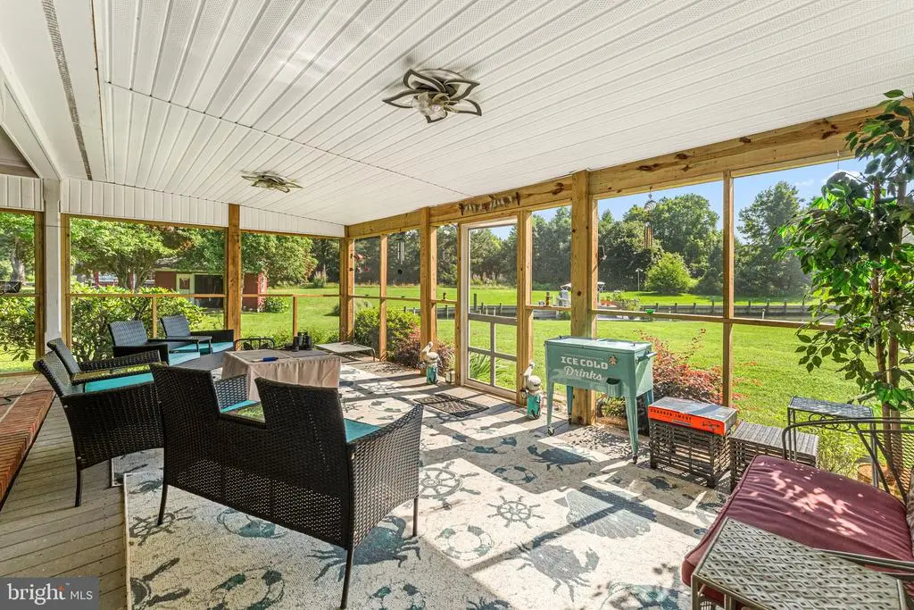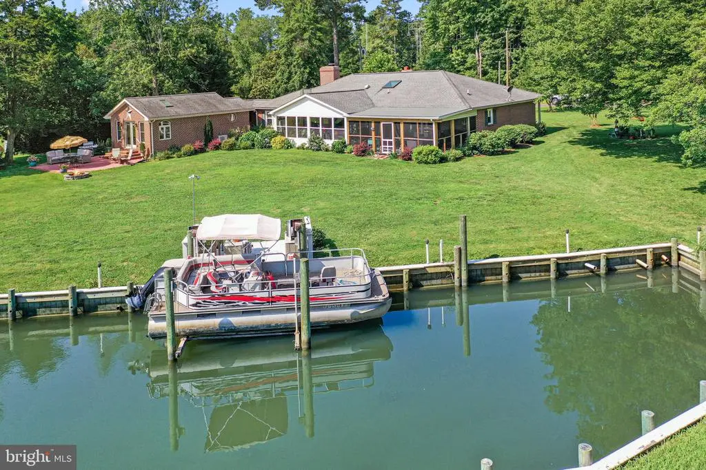 Discover serene luxury in this beautifully updated brick ranch-style home, nestled on 4.4 acres with approximately 450 feet of pristine shoreline along a protected, dredged harbor fortified by a bulkhead. Boasting breathtaking east-facing views of the bay and unforgettable sunsets, this property offers the perfect blend of modern comfort and waterfront charm. The home features 3 spacious bedrooms and 3.5 baths, including a recently added owners' suite with a lavish ensuite bathroom and expansive walk-in closet that opens directly to a private waterfront patio. Entertain or relax in the large sunroom, seamlessly connected to an equally impressive waterside screened porch, perfect for enjoying the coastal breeze. Two waterside patios and a convenient boat lift enhance the waterfront lifestyle. Additional highlights include an attached garage, a 14kW backup generator, and versatile outbuildings, including a barn, stables, and extra storage shed. The fenced meadows, previously home to livestock, offer endless possibilities for equestrian or agricultural pursuits. This exceptional property combines timeless elegance with practical amenities, making it a rare find for discerning buyers seeking a waterfront retreat.