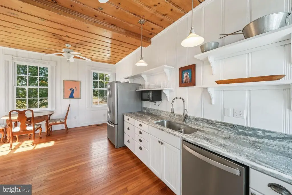 Here is your opportunity to own a tranquil waterfront retreat with 110 feet of shoreline! This gorgeous Center Hall Greek Revival (circa 1804) sits on 3.49 acres and blends period character with thoughtful modern updates. Rock Hall’s classic 2-over-2 architecture has been meticulously restored, offering gracious proportions, timeless millwork, a charming tin roof and natural light from every side! The home's freshly renovated kitchen has new appliances, granite countertops and 10-foot ceilings. The charming built-in bookcases, two fireplaces, preserved wide-plank loblolly pine floors and tin roof add to the charm and historic feel of this very special home. HVAC new in 2025. This home's coveted location is literal steps from Smith Point Marina, and the deeded boat slip on Rock Hole Cove provides direct water access for your boat or kayak. Historic charm meets modern convenience across a serene, usable landscape—an exceptional setting for outdoor enjoyment and effortless entertaining. A rare chance to acquire a historic waterfront property with both lifestyle and investment potential.