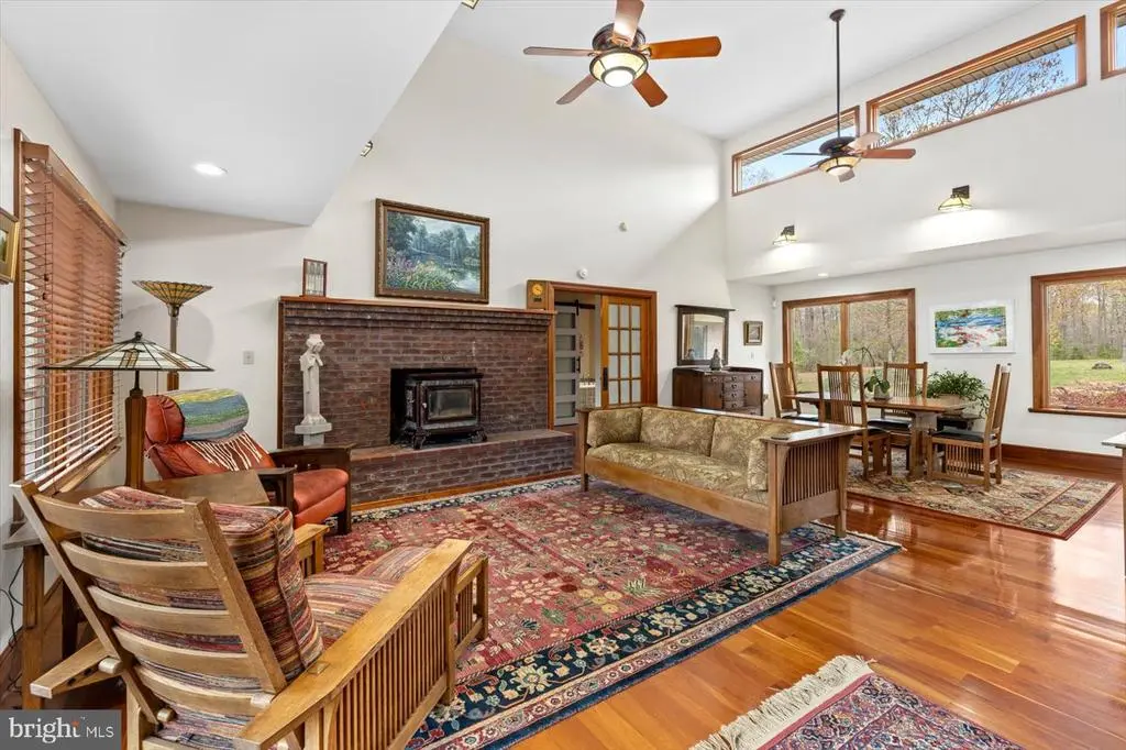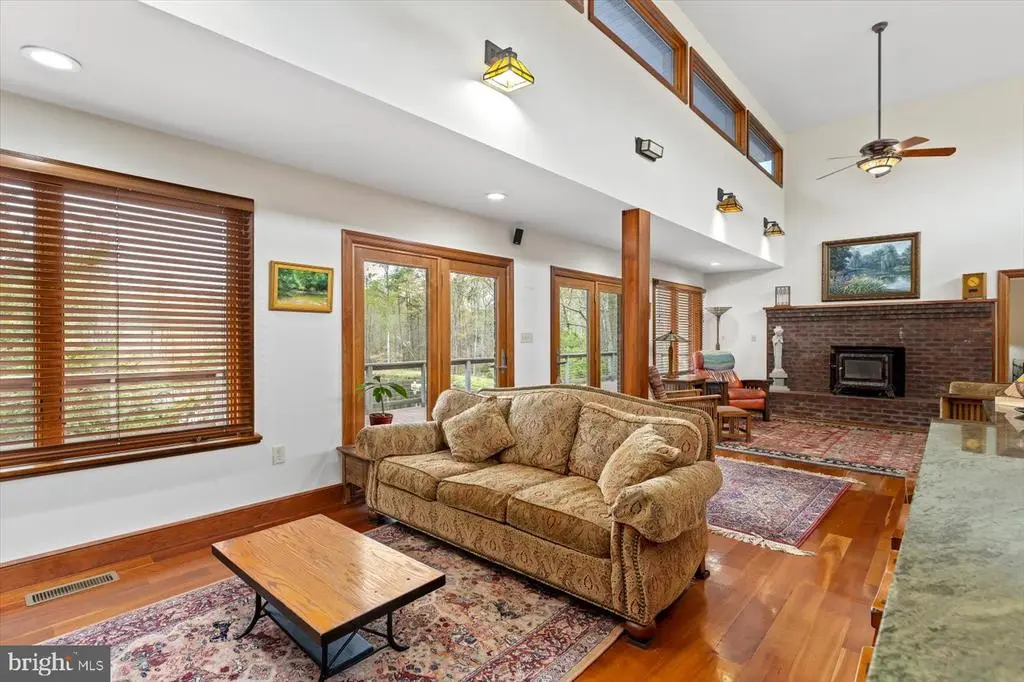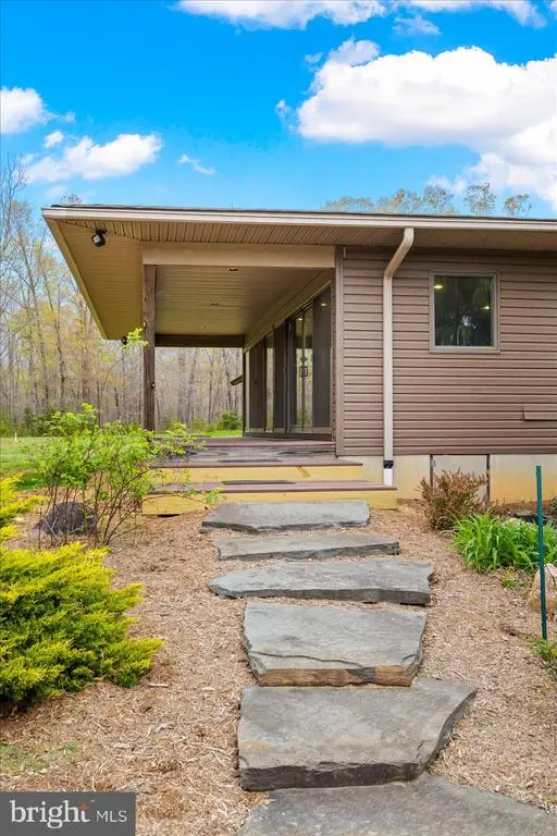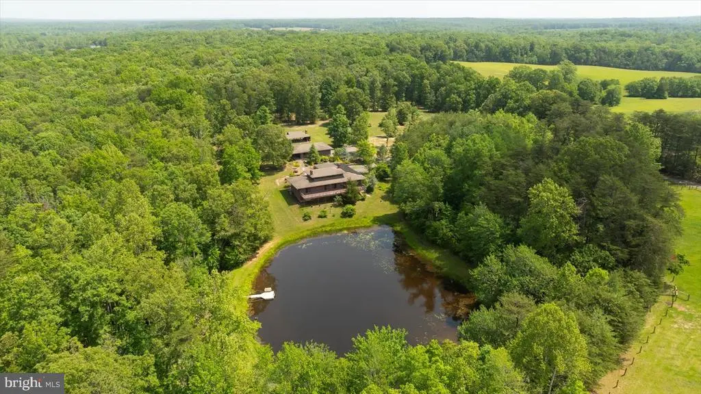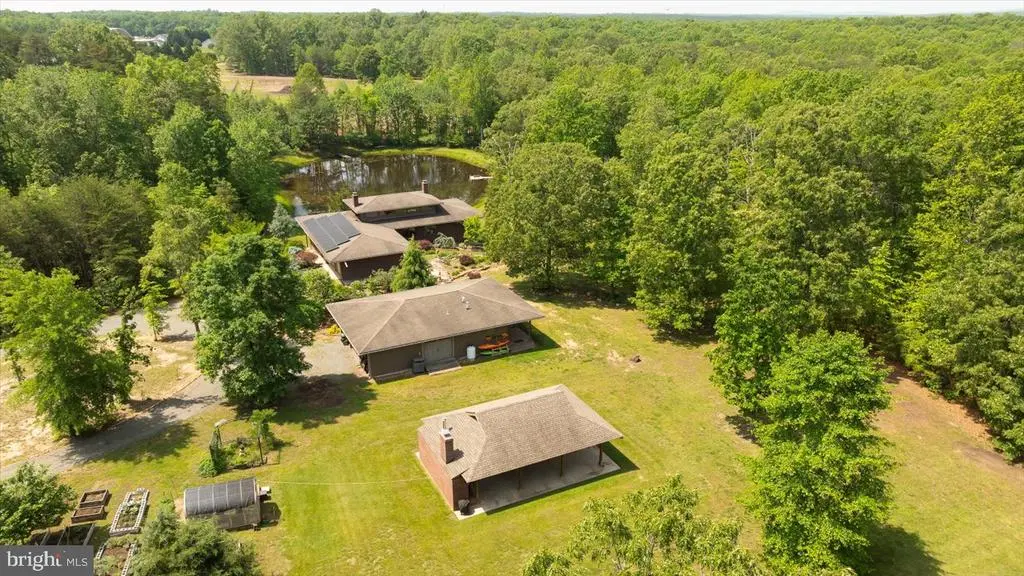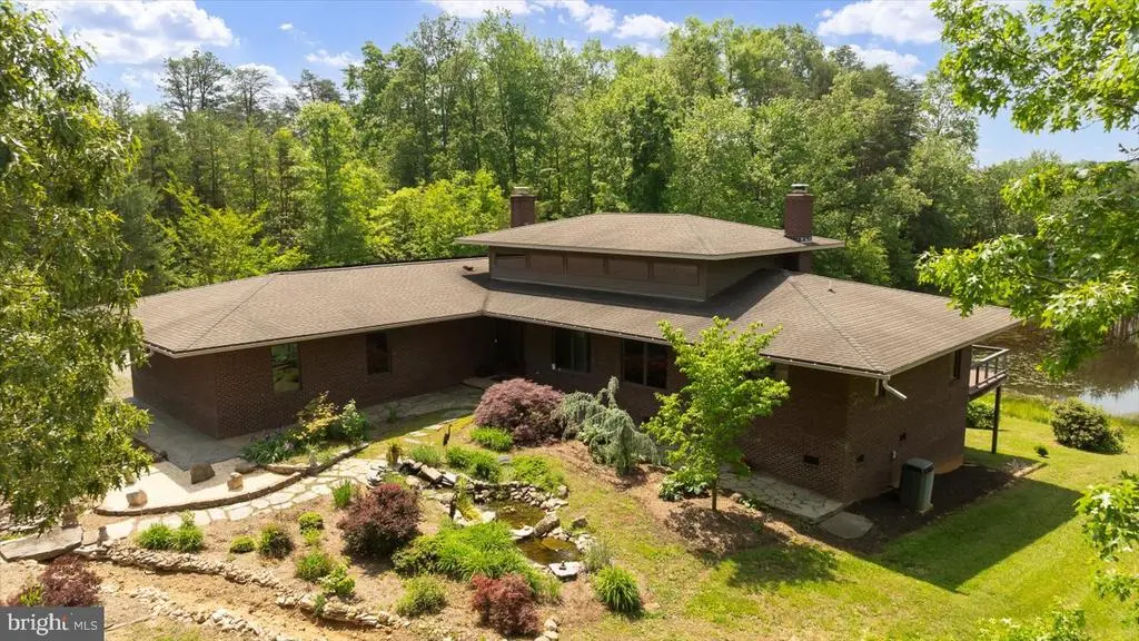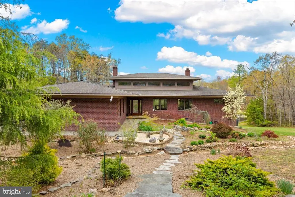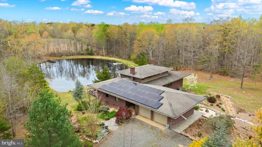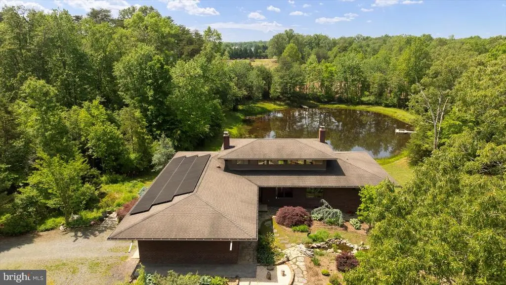 PRICE ADJUSTMENT on this one-of-a-kind Frank Lloyd Wright Prairie-style home is an architectural and natural retreat, nestled on 32.61 acres in Orange County, VA. Custom built with intention and artistry, this home offers serenity, sustainability, and soul. Inside, the design embraces natural materials and warm wood finishes, creating a harmonious and inviting living space. Handcrafted cherry trim, 4” cherry plank flooring milled in Pennsylvania, and cherry Thomasville cabinetry with granite counters set the tone. A Thermador commercial gas range and Andersen windows and doors add both function and style. The great room features 16’ ceilings with transom windows and a fireplace with a soapstone insert. The primary suite includes a steam bath and soaker tub. Systems include solar panels (net metered), a whole house Generac generator, tankless water heater, and a heat pump with gas backup. The partial basement (outside entrance only) offers excellent storage and houses many of the home’s utilities. The detached garage/workshop includes a studio apartment (formerly a certified kitchen)—offering Airbnb or guest space potential. A pavilion built in 2018–2019 features a brick oven, brick fireplace, electric, and a custom gathering table, perfect for entertaining. Outdoors, the property is a sanctuary of native Virginia landscaping—a naturalistic approach that favors pollinators, birds, and beneficial insects over manicured lawns. Thoughtfully curated with native wildflowers, grasses, and shrubs, this eco-friendly design supports local biodiversity and seasonal beauty. Additional features include a spring-fed pond, koi pond, greenhouse, raised garden beds, and 3 miles of private walking trails. This thoughtfully crafted home offers a unique and serene setting ideal for an event venue. The Frank Lloyd Wright-inspired design, soaring ceilings, handcrafted cherry details, and spring-fed pond create a memorable backdrop. A full-length deck overlooking the water and a pavilion with brick fireplace and oven are perfect for outdoor gatherings. A truly special property with timeless character, environmental harmony, and natural beauty. An adjoining parcel of 49.74 acres is also available, with approximately 880' of state road frontage and division rights. For those who prefer private access, there is the option to build a personal driveway directly from the state road—a fantastic opportunity to further customize the property to your lifestyle and preferences. Both parcels are zoned Agricultural and in land use under the Virginia Forest Stewardship Plan. Conveniently located just a short drive to Lake Anna, Culpeper, Richmond, and Washington, D.C. Floorplan, survey, and list of features available.