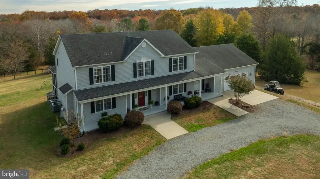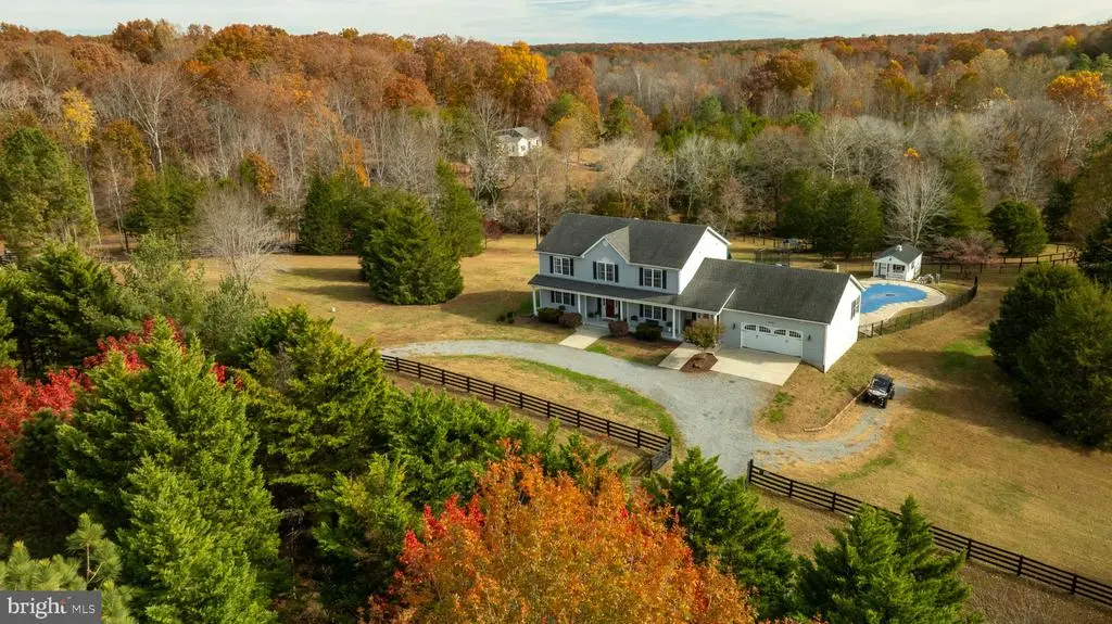 Welcome to Fieldstone Acres, a private five-acre homestead perfectly designed for both people and pets! Arrive in style through the circular driveway with double entrance gates and split rail fencing with wire, leading to a beautifully crafted 3,000 sq. ft. home complete with a full front porch and an oversized, extra-deep two-car garage. Step inside the grand foyer, adorned with dentil molding, chair rail, transom windows, and detailed trim work. Throughout the main level, you’ll find wood floors that were refinished in 2024, 9-foot ceilings, 6-inch baseboards, crown molding, and elegant millwork—details that truly elevate this home’s character. To the left of the foyer sits the formal living room featuring a cozy gas fireplace, while the right opens to a spacious formal dining room with room for a hutch, server, and display cabinet. Continue down the center hall to find a half bath with double sinks and granite counters. At the heart of the home is the inviting breakfast room that flows into a chef’s dream kitchen, boasting a massive 74” x 40” granite island, an abundance of 42” glazed cabinetry, and a double pantry—perfect for gatherings of any size. Just off the kitchen is a versatile mudroom or office with front and rear entrances and a covered porch overlooking the pool. The adjacent family room provides easy access to the screened porch for seamless indoor-outdoor living. Upstairs, retreat to the owner’s suite featuring hardwood floors, crown molding, a walk-in closet, and a luxurious ensuite bath with jetted tub, dual granite vanities, water closet, and 5-foot shower. Three additional generous bedrooms share a full hall bath. All bedrooms have beautiful hardwood floors. The upper level also includes a large laundry room (10’ x 6’) with window, folding counter, and drying bar. Out back, relax on the updated screened porch (new carpet, posts, and railings in 2024) or the connected deck—perfect for grilling or outdoor dining. Just steps away, enjoy the in-ground concrete pool with waterfall, bench seating, and depths from 3 to 8 feet. The pool was refreshed in 2023 with new tile, reglazed concrete, new cover, and new pump; and a pool house that conveniently stores all equipment. For your animals, hobbies, or storage, the property includes a 32’ x 28’ barn with two stall doors, a lean-to and ready for your custom build out. Plenty of space for stalls and a tack room. The barn has both water and it's own separate electric service, a plus if renting out the barn. In addition, there is another lean-to in the north pasture. The land is fully fenced with multiple split rail and wire sections to create separate pastures. Previously a successful alpaca farm, Fieldstone Acres offers endless opportunities. Located in a quiet, one-street neighborhood, this peaceful retreat is just 10 miles from the Spotsylvania–Orange County line near the Rt 3/Rt 20 intersection, and only 20 minutes from Culpeper. Don’t miss your chance to own Fieldstone Acres—a perfect blend of country charm, elegant living, and outdoor paradise.