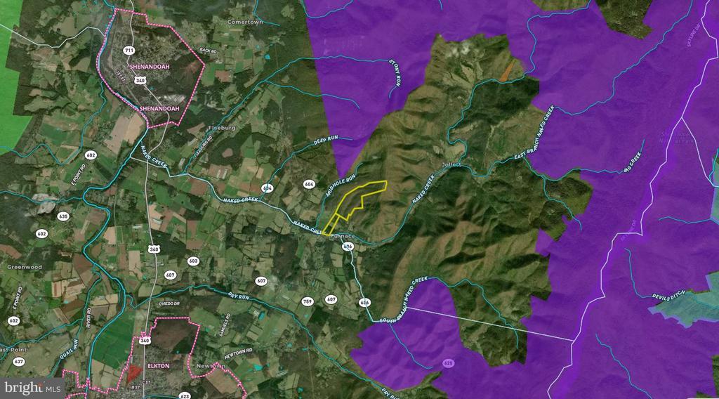 This stellar piece of land is located northeast of Elkton and near the Furnace area of the county. A creek bottom, large hay field, and expansive wooded acreage make up this parcel which stretches to the top of Grindstone Mountain. Dynamic views of the surrounding mountains and countryside can be seen from the hay field and upper elevations with some tree clearing. This tract fronts teeming Naked Creek and paved Naked Creek Road for nearly 650 ft. Electricity is already running through the property and other utilities are nearby making connections much more affordable. Currently being used for hay production and atv riding but it would also make an excellent site for your dream home or vacation rental. Enjoy hiking, fishing, camping, and recreation of all kinds on this parcel as well. Experience exciting hunting as many types of wildlife call this property home including deer, turkey, bear, and many small game species. Internal trails make accessing the majority of the land easy and pleasant. Currently enrolled in the county’s agricultural and forestry land use program to significantly reduce the annual taxes. Just a short drive from all the amenities and attractions Harrisonburg has to offer. Only minutes from the adventure and excitement of the Blue Ridge Parkway and Shenandoah National Park.