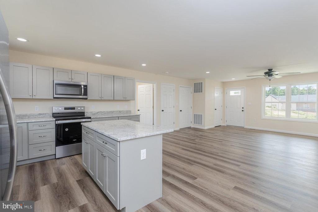 Experience the charm of small-town living in this brand-new ranch-style home located in Stanley, Virginia. This move-in ready home offers three spacious bedrooms and two full bathrooms, combining modern comfort with timeless appeal. From the welcoming front porch, enjoy breathtaking views of the Shenandoah National Park—a serene backdrop for your daily life. Inside, luxury vinyl plank flooring flows seamlessly through the main living areas, offering durability and style. The open-concept kitchen is designed to impress, featuring granite countertops, ample workspace, and abundant storage, ideal for everyday cooking and entertaining alike. The private primary suite is a true retreat, complete with a walk-in closet, en-suite bath, and a dedicated makeup area. A mudroom with a full-size washer and dryer adds convenience and organization, while the attached two-car garage provides additional storage. The walk-out basement, already plumbed for an additional bathroom, offers endless possibilities for future expansion. Outside, freshly laid sod enhances the curb appeal. Enjoy town conveniences including public water, sewer, and trash service, but without town taxes! Outdoor enthusiasts will love the front porch and rear deck, while being just minutes from hiking and biking in Shenandoah National Park and George Washington National Forest, as well as floating / fishing on the scenic Shenandoah River. With easy access to Harrisonburg, Charlottesville, and even Washington, D.C., this home is perfectly situated for both peaceful living and convenient commuting. Do not miss your chance to own this beautiful new home—schedule your showing today!