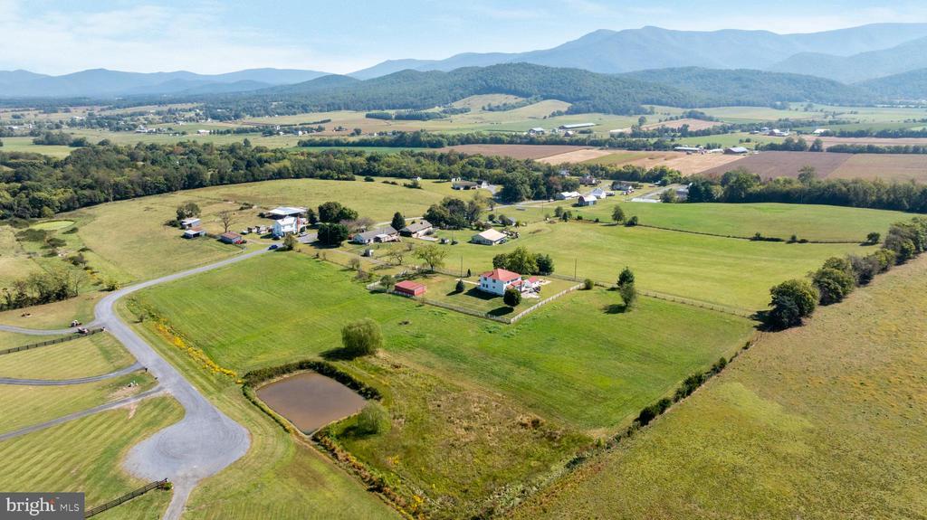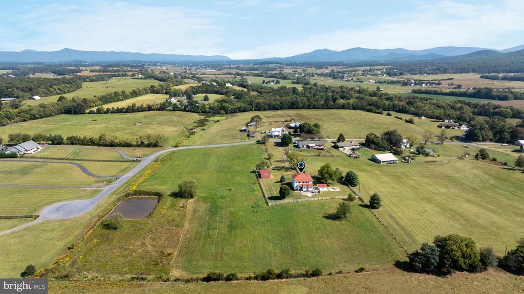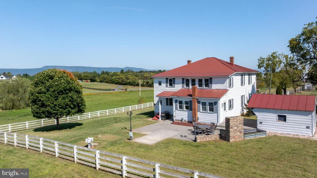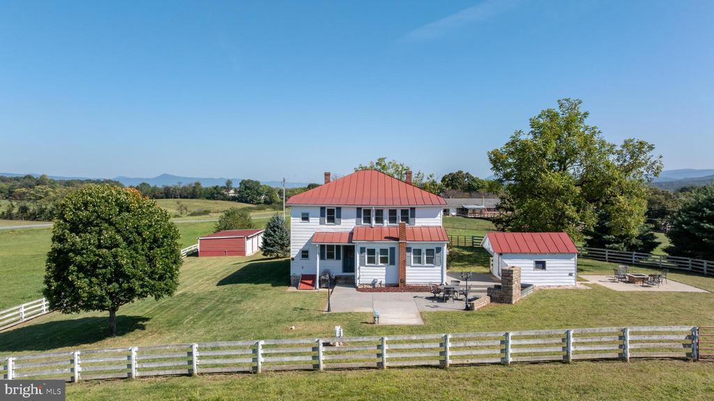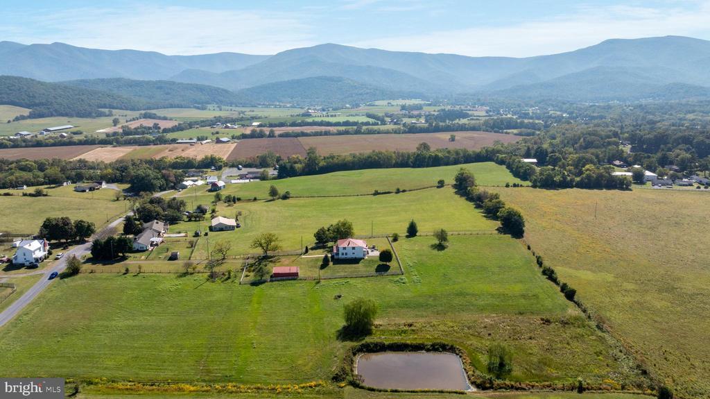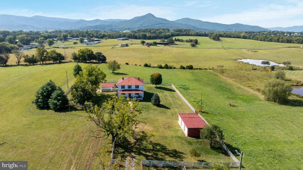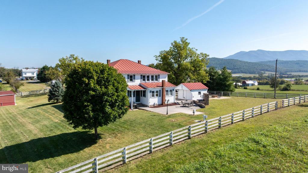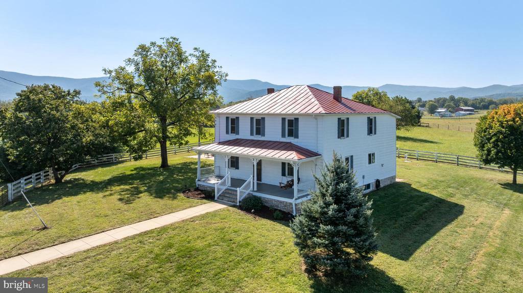 Modernized farmhouse with astounishing mountain views on 4.7 acers of open land. This stunning 4 bd 3 ba farmhouse beautifully blends historic charm with modern upgrades, all while being situated on over 4.7 acers. As you walk into the farmhouse you're greeted in the grand center foyer, which extends the length of the home and showcases a sweeping staircase. The sizeable rooms throughout are designed for luxurious living, including a gourmet kitchen that has a stunning scenic view, with a walk in pantry, a formal dining room, a living room, office and cozy family room. The primary suite offers a private bath and spacious walk in closet, while the additional bedrooms are generously sized, accompanied with natural lighting filled bathroom. Stepping outside, youre met with a serene pond and breath-takingly expansive views of the Blue Ridge Mountains. Convienently located between the George Washington National Forest and the Shenandoah National Park. A large covered front porch, and a spacious rear patio that is accompanied with a charming outdoor fireplace that provides the perfect entertaining space, or quiet evenings at home. Completing the property is a three-bay spacious detatched garage, ideal for vehicles, equipment, or the perfect space for additional storage. This home is the perfect combination of luxury, history, and modernized convenience- ready to welcome you home.