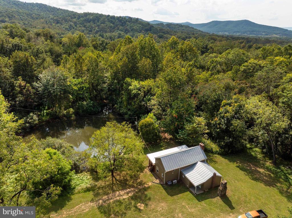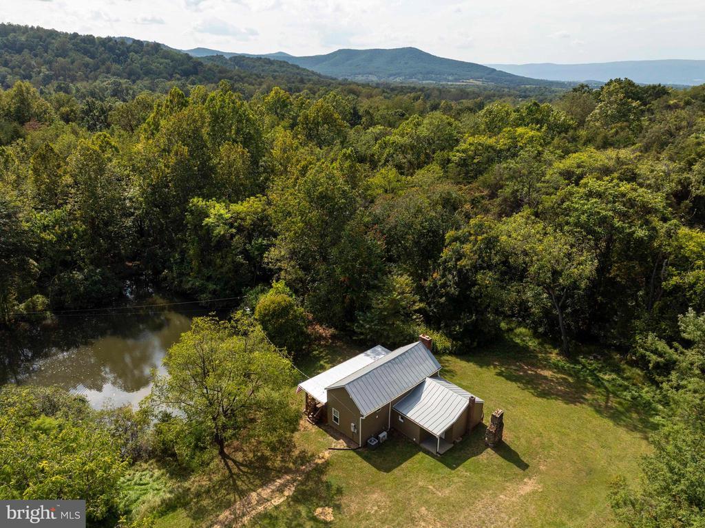 UNRESTRICTED 13.87 ACRES WITH POND . This property offers an abundance of wildlife, fishing. hunting, history and just total relaxation from the fabulous porch over looking the pond. Would make an excellent homestead , airbnb, weekend or full time living. Living room features log walls, fireplace with raised hearth and mantel and antique glass doors leading into the kitchen. The large kitchen is new with quartz counter tops and a barn door with plenty of room for your dinning table. The main level bedroom overlooks the pond with a full bathroom. The two bedrooms upstairs share a bathroom. ALL FURNISHING'S CONVEY Home has new electrical, plumbing, windows, flooring, kitchen, bathrooms, new HVAC & mini splits. Generac whole house generator, new metal roof, gutters, siding and a new well. The detached garage has electric with an unfinished space above the garage. Located close to the Shenandoah National Park.