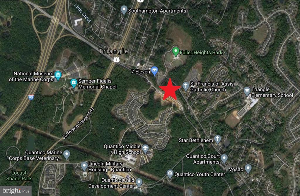 100 Apartments / condos? A large Senior housing project? Public Storage? Mixed Use? 5.84 acres land zoned B1 comercial, 2.65 Acres Buildable, 0.35 acres can be used as parking, and the rest is wetland. Within 1 mile of entrance to Quantico MC Base, MC Museum and several commercial and residential developements. Great location for your business! Readily accessable to major roads and highways. From Our Consultant - "The site has a B-1 Commercial Zoning category and a Comprehensive Plan zoning district of Urban Residential Medium (URM). Urban Residential has two categories list, one is R-16 and R-30. The attached ordinance says a minimum of 31 units/acre, but since its considered Medium, I would think we could look at doing R-16. " We have done detailed survey and engineer. check the document part to download. Seller licensed