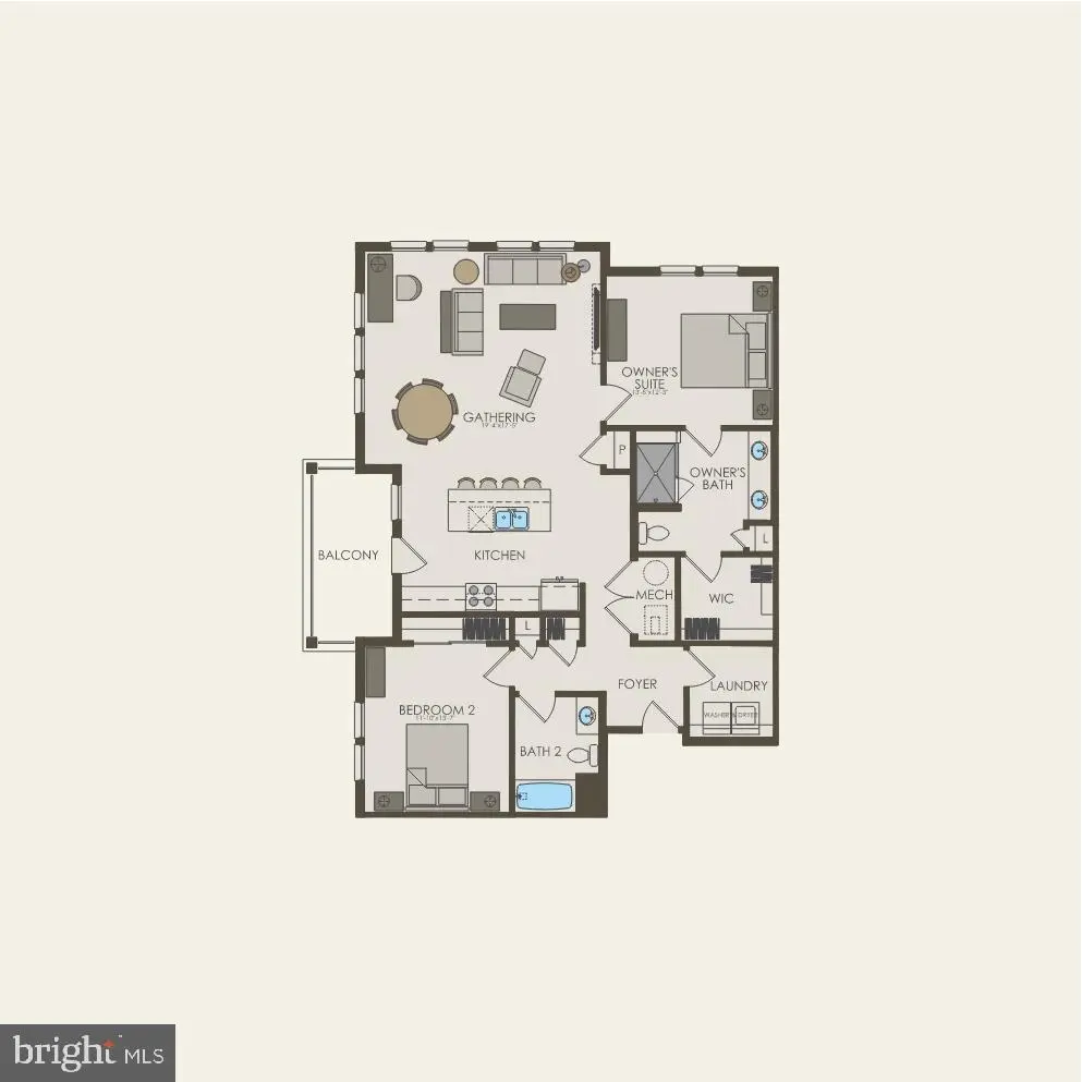 The Harper is loved for its center-island kitchen that opens to living space. As a corner condo, expansive windows flood the gathering room with light.