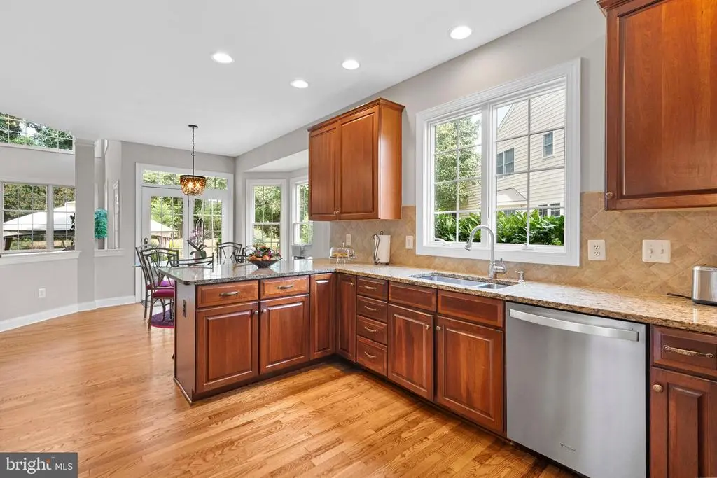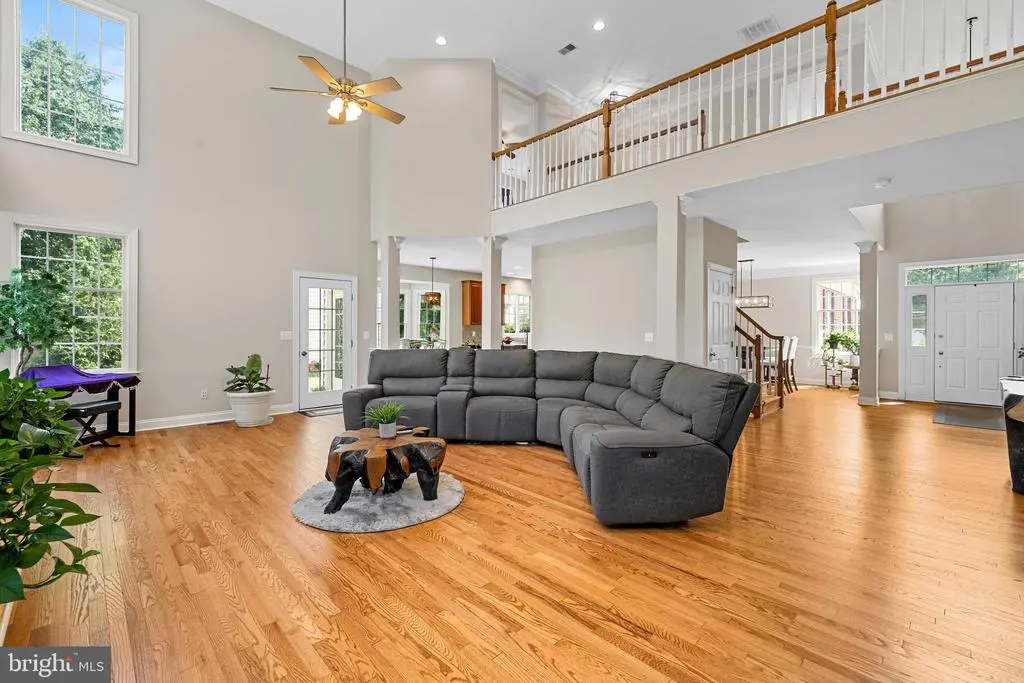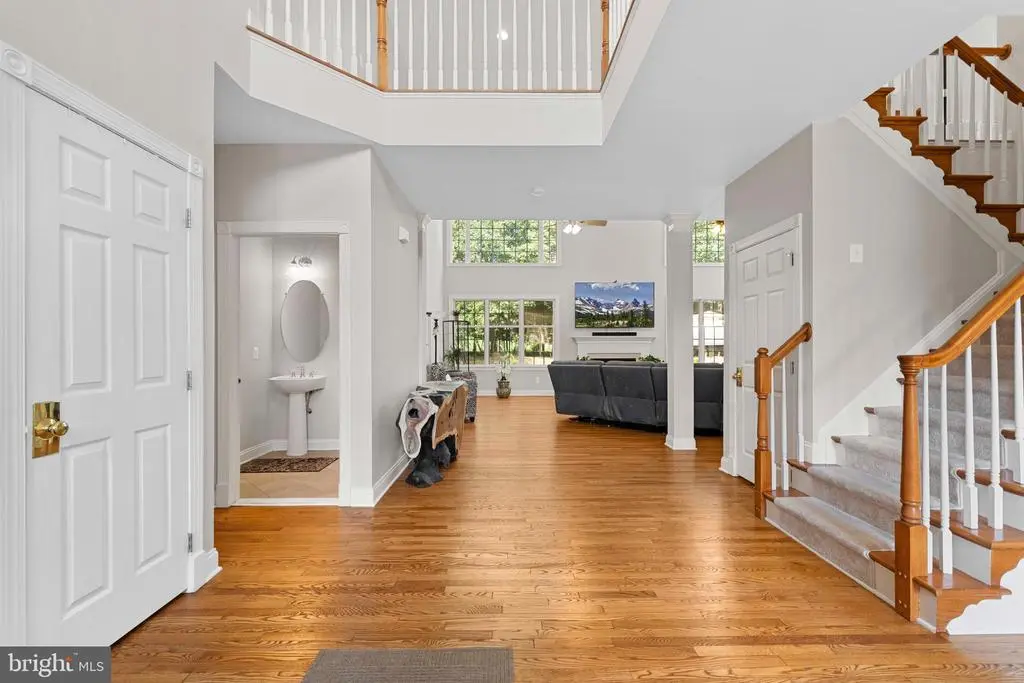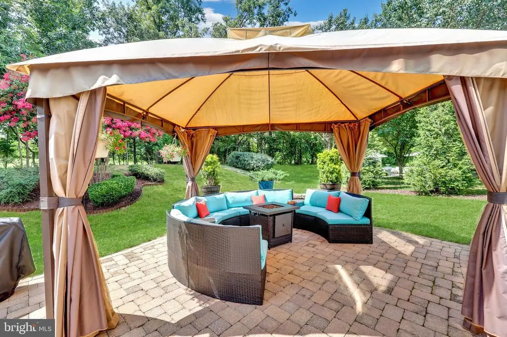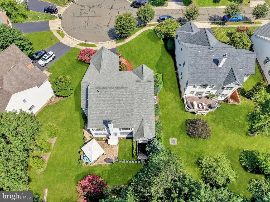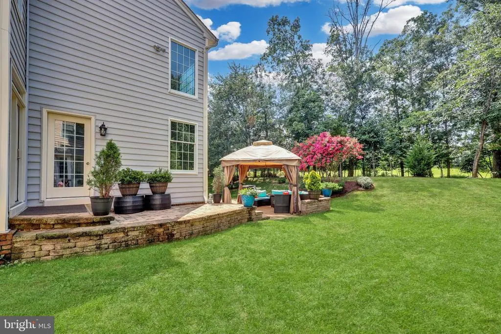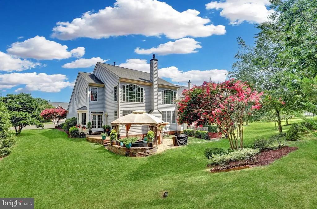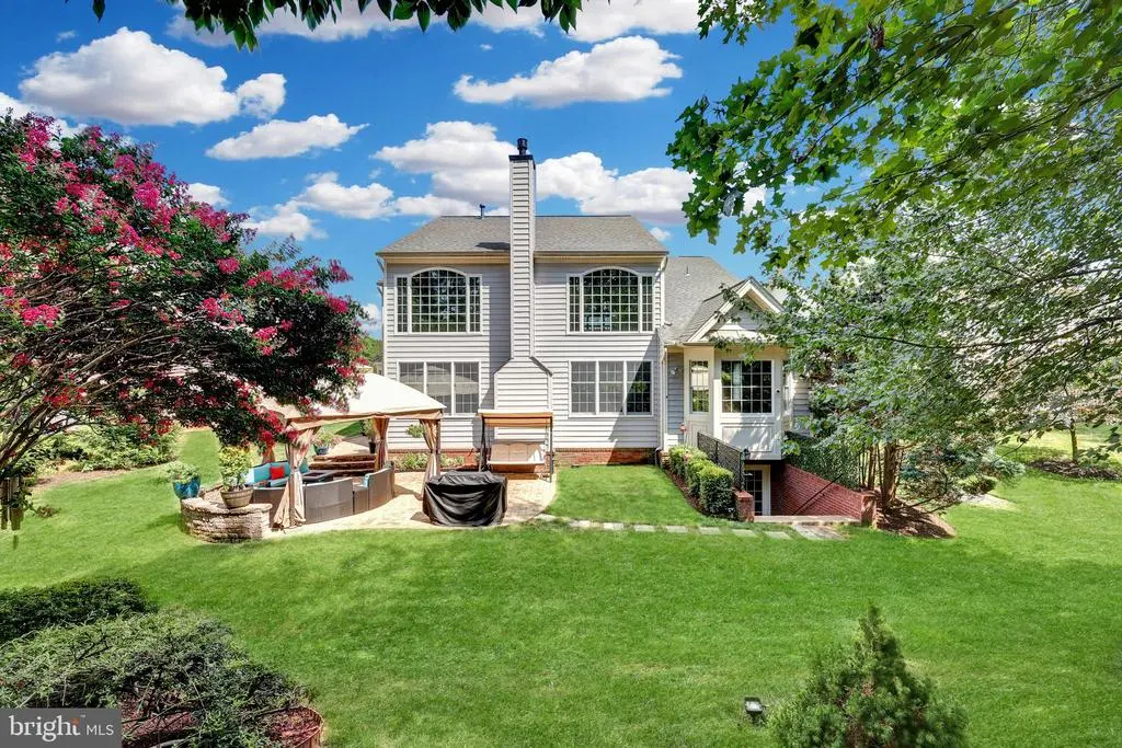 Colonial with Main-Level Primary Suite on Golf Course Lot in Dominion Valley! This 4BR/4.5BA home sits on a premium cul-de-sac lot backing to the 15th hole of the Arnold Palmer Championship Course inside the gated Dominion Valley Country Club. Inside, you’ll find refinished hardwood floors, fresh paint, and updated lighting throughout. The gourmet kitchen includes maple cabinets, granite countertops, decorative backsplash, and all-new 2024 stainless steel appliances. It opens to a two-story family room with a wall of windows, dual ceiling fans, and a cozy gas fireplace. The main-level primary suite features a bay window, vaulted ceiling, two walk-in closets, and a spa bath with soaking tub and dual shower heads. Upstairs are three spacious bedrooms—two with a Jack & Jill bath and one with private access to a full bath. The finished walk-up basement adds a large rec room, full bath, and plenty of storage, perfect for a home gym, media area, or playroom. Step outside to a custom paver patio with seat wall, mature trees, and automatic uplighting. A swing bench and canopy gazebo convey, creating an instant backyard retreat. Extras include EV-ready garage hookup, smart home features, and updated irrigation system with Wi-Fi controls. Major systems updated: Roof (2017) and HVAC units (2015 & 2017). Living here means enjoying resort-style amenities: a renovated clubhouse, fitness center, pools, tennis and basketball courts, walking trails, stocked ponds, and top-rated on-site schools—all in one of Northern Virginia’s most desirable gated communities.