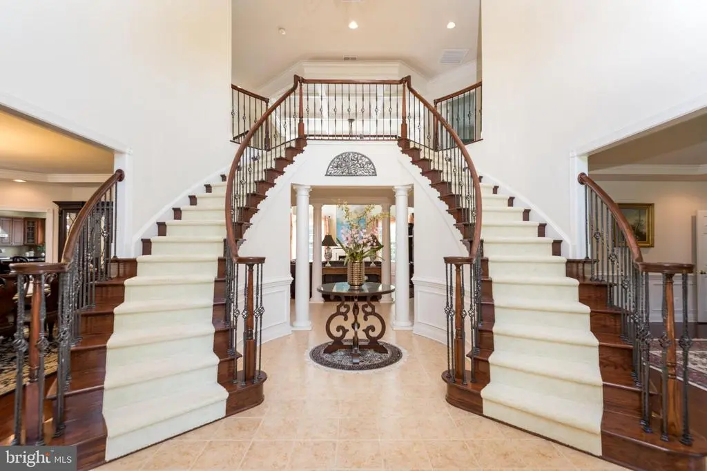Immaculately maintained by its original owner, this exquisite Hampton estate is the pinnacle of luxury living in Dominion Valley Country Club. Offering over 9,100 sq. ft. of refined space, 6 bedrooms, 6 baths, and unmatched craftsmanship, this home is designed for both grand entertaining and everyday comfort. Step inside the soaring two-story foyer with its curved butterfly staircase, wrought iron railings, and gleaming Brazilian cherry hardwood floors. Formal living and dining rooms set the stage for elegant gatherings, while the sun-drenched 2-story family room with a coffered ceiling and fireplace provides the perfect everyday retreat. The heart of the home is the chef’s gourmet kitchen, showcasing Monogram stainless appliances, professional-grade gas range, dual dishwashers, wall oven, granite countertops, upgraded cabinetry, center island, and an expansive breakfast area. A main-level bedroom with full bath and a huge solarium make multi-generational living effortless. Upstairs, the owner’s suite is a private sanctuary, with a sitting room, tray ceiling, bonus office/gym, walk-in closets, and a spa-like bath with dual vanities and a secondary washer/dryer. Additional bedrooms include a Princess Suite and two Junior Suites—each with its own private bath and sitting area. The sun-filled walk-out basement features 9-foot ceilings, full-size windows, a spacious rec room, bedroom #6, a full bath, and abundant storage. Outside, enjoy nearly half an acre of privacy, a fully fenced yard backing to mature trees, maintenance-free deck, paver patio with sitting wall, and custom hardscaping. A 3-car side-load garage and oversized driveway provide plenty of parking. Located just a short walk to HOA amenities, this estate also offers access to Dominion Valley’s world-class lifestyle—the Arnold Palmer Signature Golf Course, renovated clubhouse, sports pavilion, indoor/outdoor pools, tennis, basketball, trails, playgrounds, and more. Served by award-winning schools.