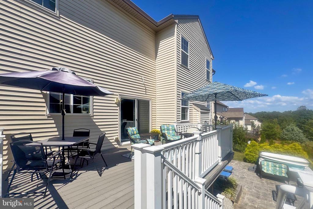 Gorgeous + IMMACULATE home with meticulous owners. 6+ bedrooms, 3.5 baths, HUGE Family room flows into quality kitchen - stainless appliances, pretty counters, pantry Plus a large island!! NO wasted space in this spacious home. Inviting entry ! Main floor - all scraped Hardwood flooring! 1st floor study or bedroom is a huge plus! Lower level has a wonderful L shaped recreation room with - bar or 2nd mini kitchen, Exercise or movie room, fully Bath plus another perfect Bedroom (not a legal bedroom w/small window)** The outside has everything you desire - a sweet Trex Deck - overlooking the 1/2 acre deep wooded lot PLUS in winter there is a water view!! Lower level stamped concrete patio - has a HOT TUB which conveys! Yard Sprinkler system **