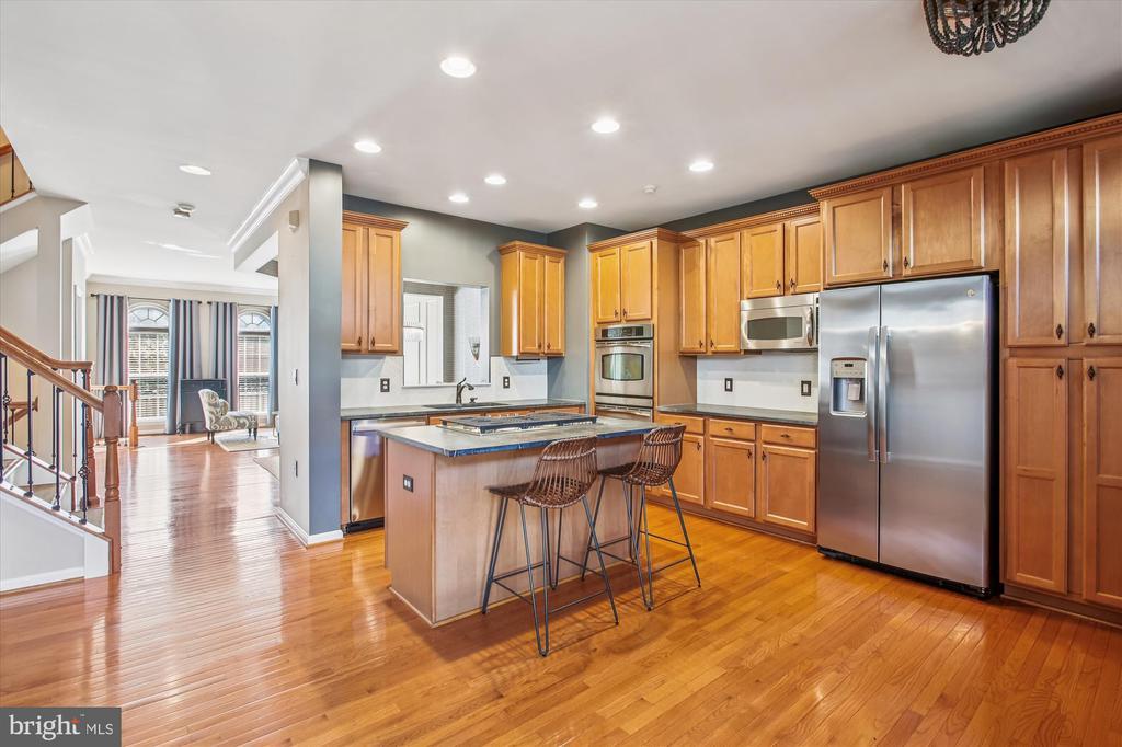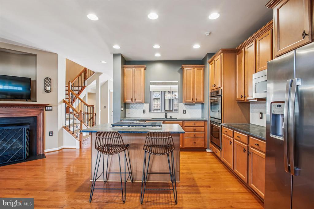 Bright Move-in Ready Townhome in Port Potomac! Beautifully maintained with stunning upgrades and elevated finishes. With 3 generous bedrooms, 3 full baths and a main floor powder room, finished lower level with walk-out, and premium finishes through-out, this home offers both style and functionality. Hardwood floors through-out the main and upper levels, including the staircase. This home features custom paint, stainless appliances, and custom soapstone countertops in the eat-in kitchen, with a gas fireplace in the adjoining breakfast area/family room. Step out from the kitchen onto the rear deck. Composite construction ensures low maintenance. Deck also features a pergola, tastefully done.. The lower level offers a cozy rec room/family room with a full bath, while the backyard is a private retreat with a beautifully paved area under the deck. This allows for outside storage or additional seating. Easily maintained landscaping with a walkway of pavers to the backyard gate. On the bedroom level, enjoy a laundry room with ample storage cabinets. French doors opening to a spacious primary bedroom and bath , with dual vanities, separate shower and soaking tub, along with a large walk-in closet. Welcome home!