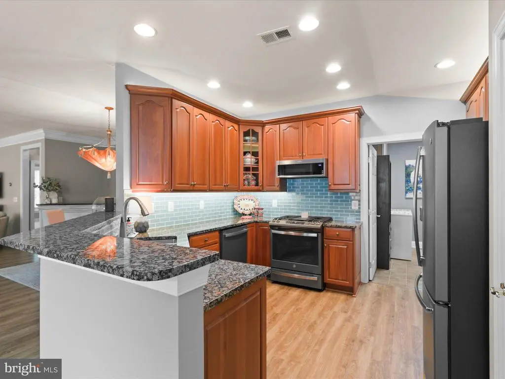 Welcome to this beautiful well-maintained patio style home in the highly sought-after Regency at Dominion Valley, an award-winning 55+ community offering resort-style living. This spacious one-level residence features 2 bedrooms and 2 full bathrooms, perfectly designed for comfort and convenience with amazing back yard views. Step inside to find tasteful updates throughout. The kitchen is a true highlight with newer stainless-steel appliances (just 2 years young), a stylish backsplash, updated faucets, and modern lighting. The bathrooms have been refreshed with upgraded counters, sinks, faucets and lighting, adding a touch of sophistication. You'll find plantation shutters, automatic blinds as well as an automatic awning for privacy and sun blockage as needed. Also, if you need storage this home has it - great storage throughout the home, plus shelving in the garage and an attic offering additional storage. The main living areas showcase stunning new luxury vinyl plank flooring, while plush new carpet creates a cozy retreat in the bedrooms. Ceiling fans are thoughtfully placed throughout the home for year-round comfort. Additional updates include a brand new HVAC system, new water heater, windows just 6 years old, and a freshly sealed driveway. The exterior is just as impressive, with professional landscaping, a convenient sprinkler system, and a welcoming patio space perfect for outdoor enjoyment with plenty of privacy. Note: The roof is scheduled to be replaced by the HOA in 2026. All lawn maintenance (mowing, trimming, etc.) and exterior maintenance is taken care of by the HOA (just think no more lawn mowing . shoveling snow & so much more) This move-in ready home blends style, comfort, and low-maintenance living—all within the vibrant Regency community, where you’ll enjoy a clubhouse, tennis, pickleball, golf, indoor/outdoor pools, walking trails, and endless opportunities to connect with neighbors and friends. Don’t miss the chance to make this stunning home with gorgeous back yard views all yours!