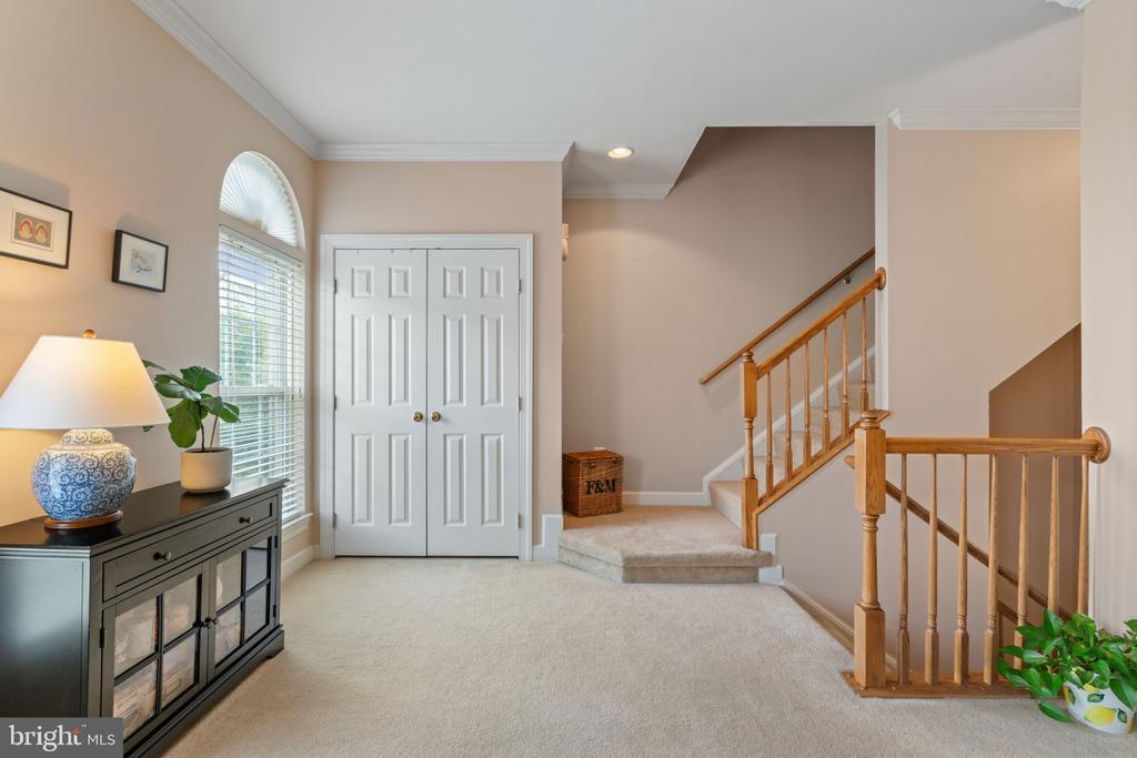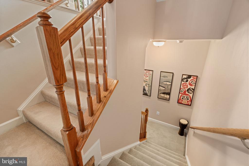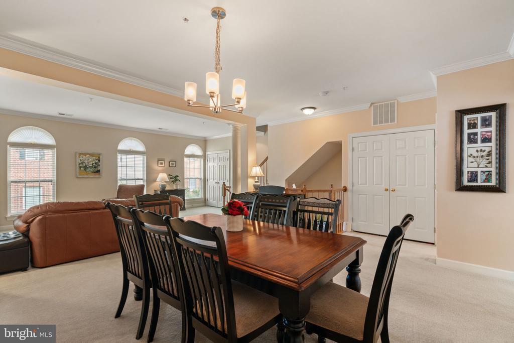 Brand New Furnace and AC units recently installed in October 2025! Welcome to Potomac Club. This 2500+ square foot 2 level home will surely please. 3 bedrooms and 2.5 baths. This unit is on the top 2 floors providing an abundance of sunlight in the front and the rear. Upon entry, make your way up the stairs where you're greeted with an open floor plan and large living area and combination dining room, complete with crown molding and chair rail finishes. Step into the back of the home and you'll fine a gourmet kitchen including all matching appliances, granite countertops, 42 inch cabinetry and a separate center island, with pendant lighting. Off the kitchen is a cozy living area making the perfect entertainment space. A tucked away powder room and large storage closet complete the main level. Upstairs, you'll find a convenient upper level laundry room with stackable washer dryer and then 3 bedrooms. The primary bedroom is generously sized with 2 walk-in closets and an ensuite bath complete with jetted soaking tub, separate shower, and a double vanity. 2 more large bedrooms and a full hall bathroom complete the upper level. Water heater was just replaced in Jan 2024. This home comes with a rear load 1-car garage and a parking space behind the garage. Plenty of street parking around front too. Potomac Club is the place to be for amenity-filled living. There is a clubhouse with staffed gym & free classes, rock-climbing wall, indoor and outdoor pools, sauna, meeting room, basketball/multi-use courts, and a party room with great community events. 3 Security gates with guards. Walking distance to Wegmans & Stonebridge Shopping Center with Alamo movie theater, Starbucks, Apple Store, great restaurants, and shops. Commuter parking garage & I-95 express lanes entrance is very convenient. The VRE train stop is 2 miles away. This is the one!