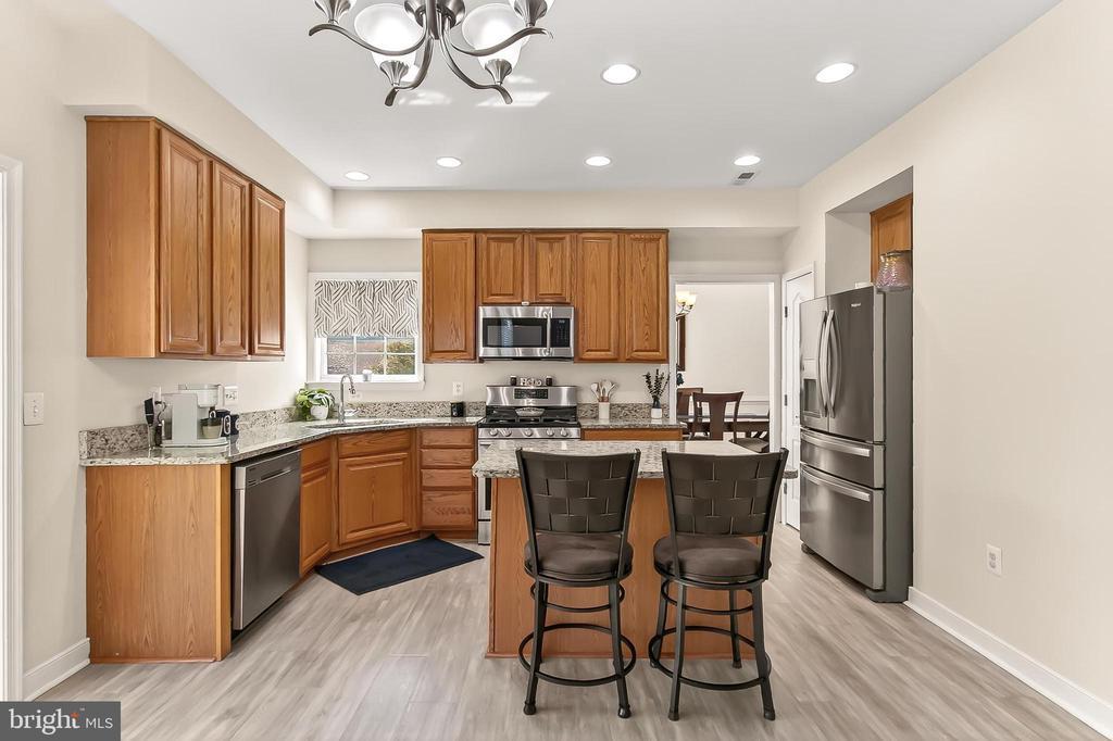 Remarkable "newer floor plan home", with all of the features that separates this one from older homes! Offering over 2,500 sq feet on the upper two levels, plus a fully finished walkout lower level, 5BR 3.5 baths-you will love the flexibility in family living that the THREE level extension allows. Enjoy the light filled main level with gorgeous hardwood floors, family room with fireplace and a well equipped, attractive kitchen. Effortlessly entertain-with the family room, kitchen and a 16x10 SUNROOM offering a huge open area without guests feeling crowded. Take the party from the sunroom to the deck and even down to the yard via the stairs! Upstairs- an expansive Primary Suite and 3 other bedrooms, including one that is almost primary size! See the floor plan in photos. Oh, no more carrying laundry up and down-the w/d are on the bedroom level, where they belong! Also, a "computer/study nook" off the hall. Downstairs- a 14x13 bedroom and a full bath for guests or spatial separation and a huge rec room/game area space. Storage too! Two zone hvac, including one brand new unit. Gas heat! NO HOA! Privacy fenced backyard and patio off of the walkout area. MOVE IN READY!